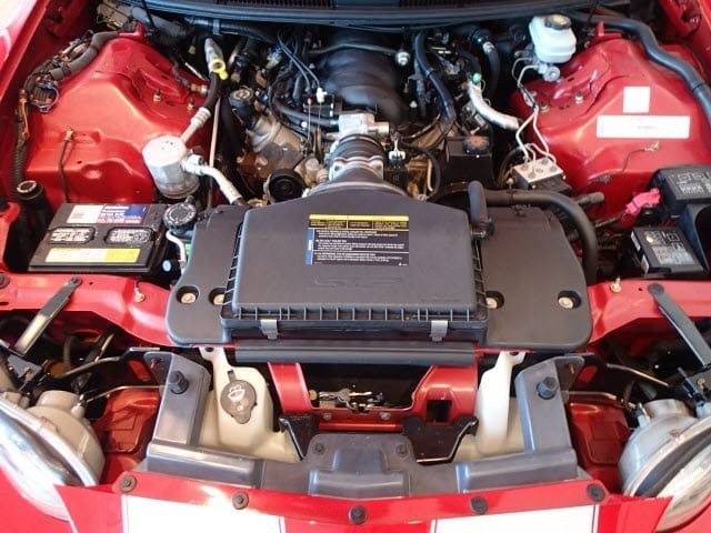 This is the special intake from SLP that’s an option. It’s the Blacking intake. It’s part of the dual dual exhaust or the centre mounted exhaust that gives in combination the 345 HP.