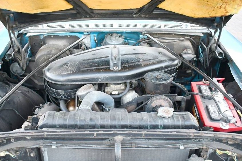 Apart from a new carpet set, the interior of this Oldsmobile continues the theme of originality. It is upholstered in a combination of blue and white vinyl and cloth, and the impression that it conveys is mainly positive. Until recently, the seats wore their dealer-installed clear plastic covers, but the owner removed most of them when they started to crumble from old age. The seats themselves are in remarkable condition, while the headliner appears as though it might be developing a repairable seam separation. The cloth inserts are parting from the door trims, but I believe that a competent upholsterer might be able to repair these without the need for replacement. The buyer won’t be getting luxuries like air conditioning for their money, but both the factory clock and AM radio are said to work perfectly.