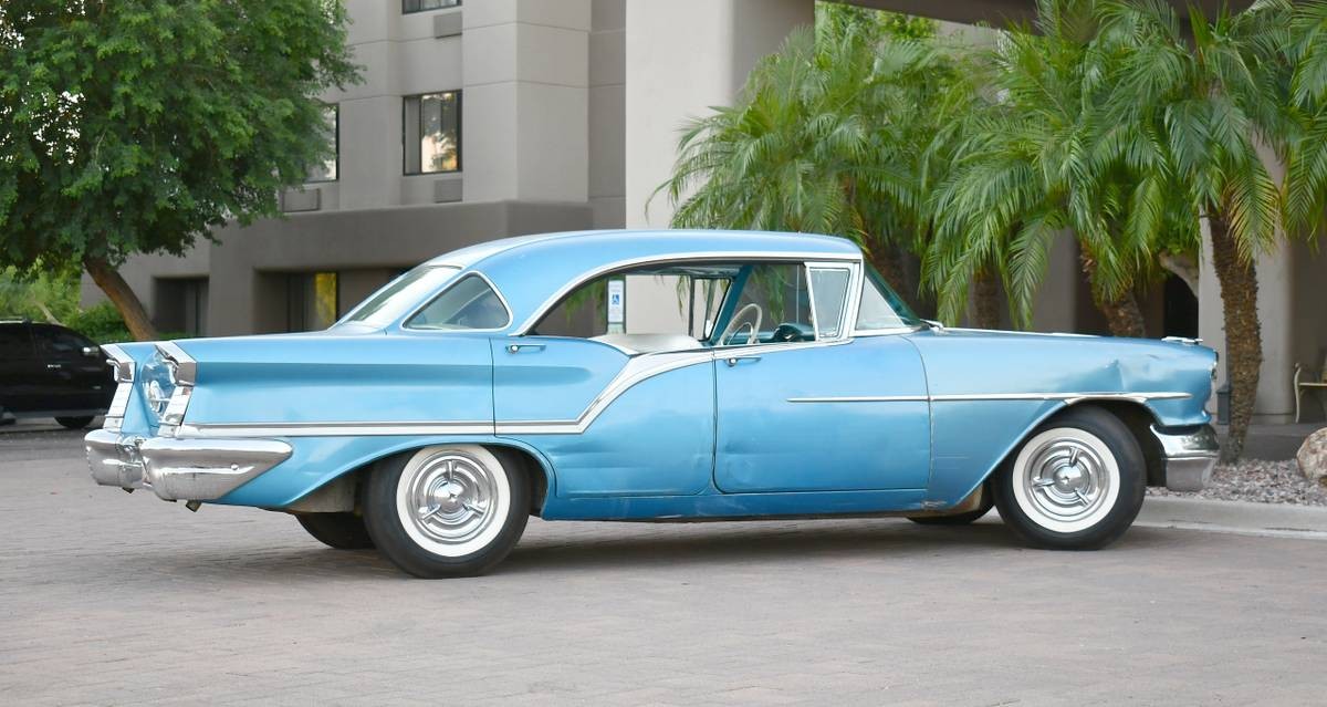 Looks like some elderly owner drove this car “by feel”, with all the boo-boos. While the ’57 Chevy got all the thunder, I’ve always believed the ’57 Olds was the nicest of the GM lineup. While this car does have the J2 option, I read it was very rare, as mentioned like only about 2,000-2500 units for the almost 50,000 cars sold in ’57. Probably the only reason this particular car was saved over the years. Regular 4 door Oldsmobiles were not sought after and junked accordingly.