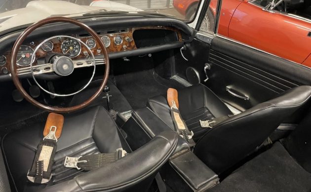Tiger development followed two parallel paths, with cars fabricated by Carroll Shelby and legendary racer Ken Miles. The Shelby version featured a four-speed manual transmission, while the Miles car’s performance was slightly hampered by its two-speed automatic. Timeframes also made a difference, with Miles given approximately one week to produce his prototype on a budget of $800, and Shelby a month and $10,000. Naturally, the Shelby version was considered the more polished and promising, and was chosen by Lord Rootes as the base for the Tiger. This 1966 example presents superbly in Arctic White with a matching Hardtop and a Black soft-top. The seller confirms that the Hardtop requires restoration, but that seems to be the only significant cosmetic shortcoming. The paint shines nicely, the panels are as straight as an arrow, and there is no rust. The trim and glass are in good order, but purists will notice a few reversible changes. These include period-correct LAT alloy wheels and a hood from the same manufacturer.