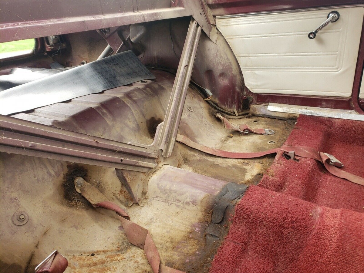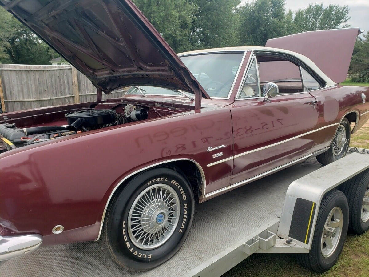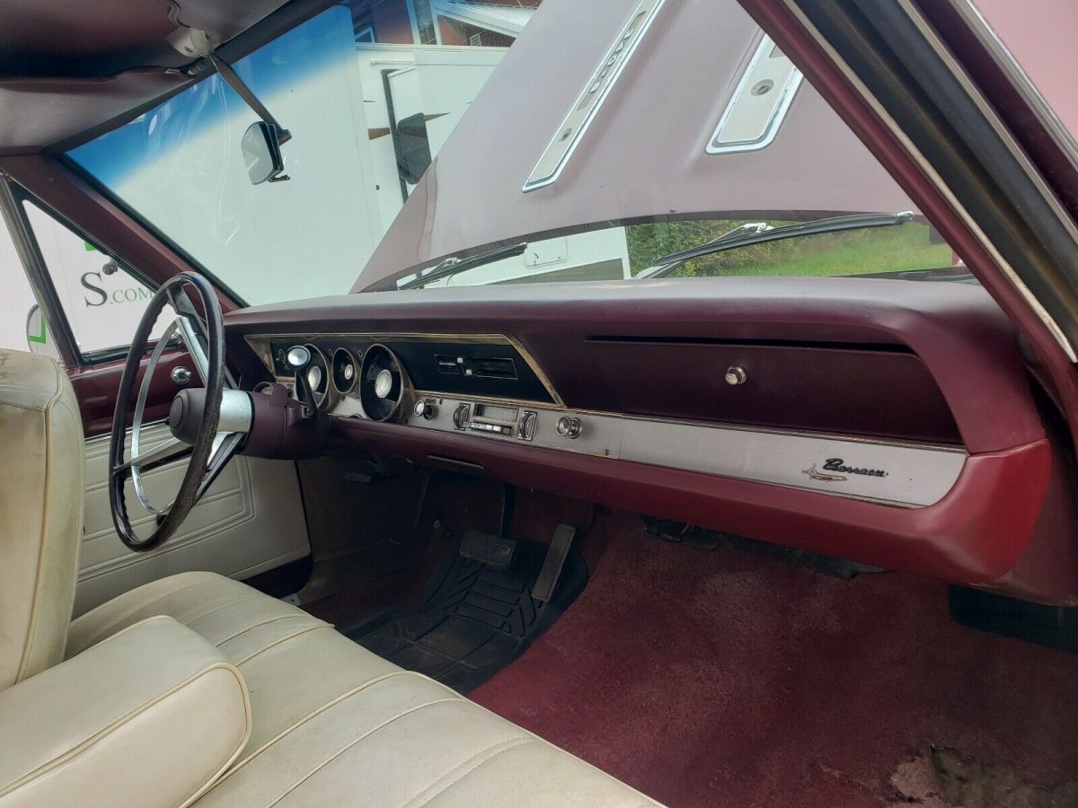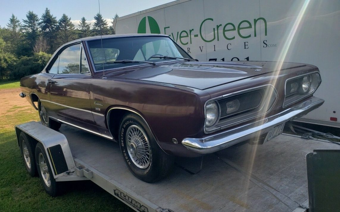 The seller offers a single-owner 1968 Barracuda Formula S (the ad says 1967, but eBay won’t let the seller change it). The burgundy paint looks to have mostly held up (we assume original) and is off-set nicely by a tan vinyl top on this notchback, which may or may not have issues around the back glass. Unfortunately, rust has taken possession in the rear quarter panels, but not in the floors or trunk. Photos supplied tend to support that, especially with the back seat pulled out. The two-tone white and burgundy interior is sharp but dirty in a few places. The seller is providing a new carpet set that was purchased back in ’95 but never installed.