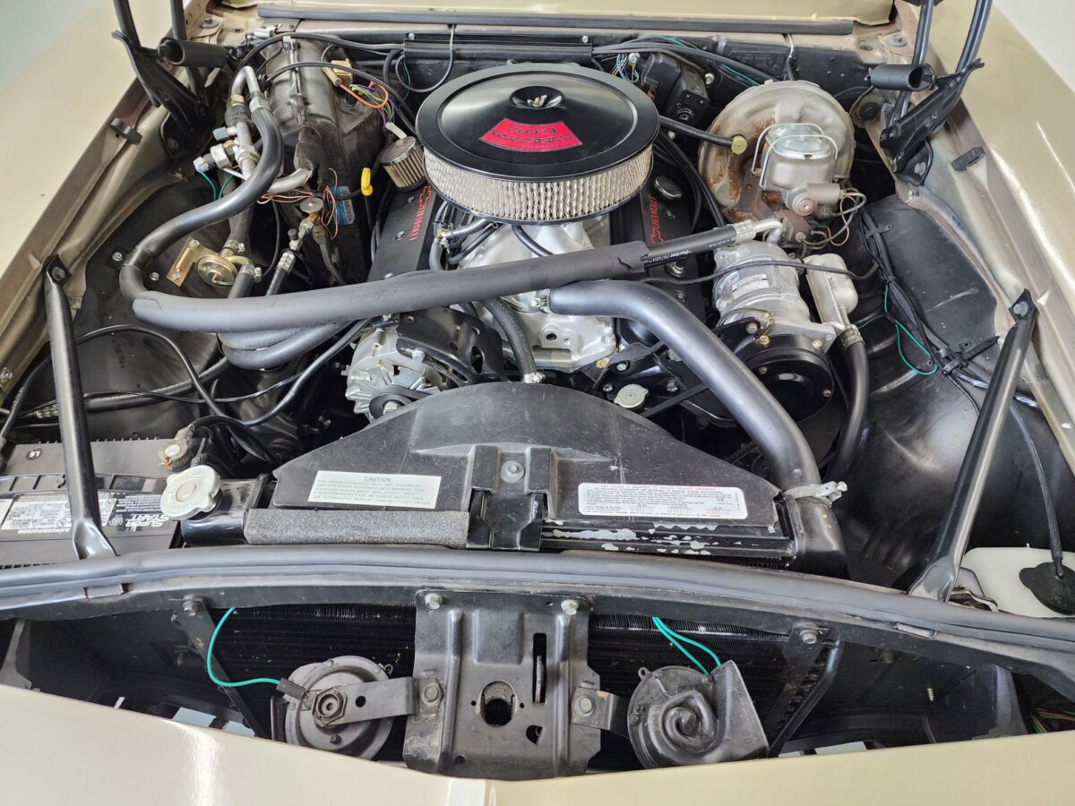 Interesting car… I agree about the AC, but it does have an upgraded aluminum A6 type compressor, so who knows. Another interesting thing I noticed at first was that there are O2 sensors on the head pipes, so EFI? After looking through tall the photos it has a Holley carb. Maybe it had EFI? New engine, new fuel tank suggests the previous drivetrain had an EFI system. Nothing wrong with a well tuned vacuum secondary Holley carb. Correct shifter with the correct chrome ball, something you rarely see anymore, factory AM/FM, clock, lots of new suspension parts. Appears to be solid as a rock, drive as is and have fun or do a cosmetic resto back to original appearance. I like it!