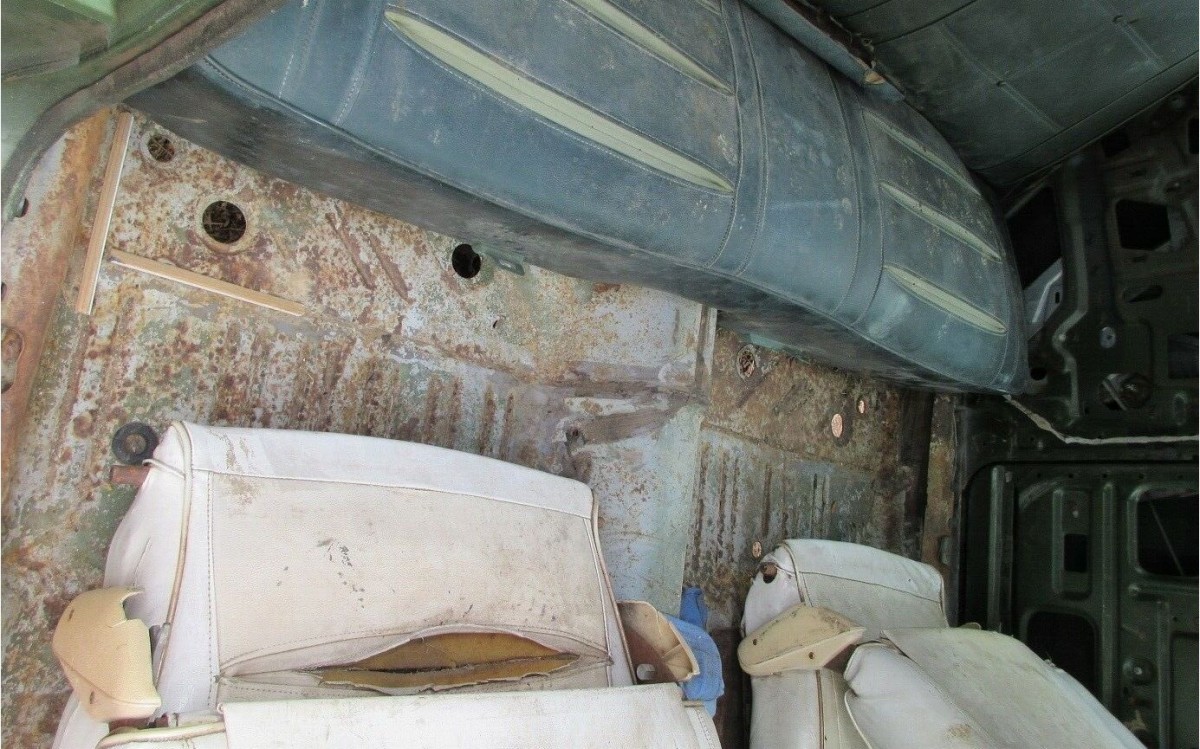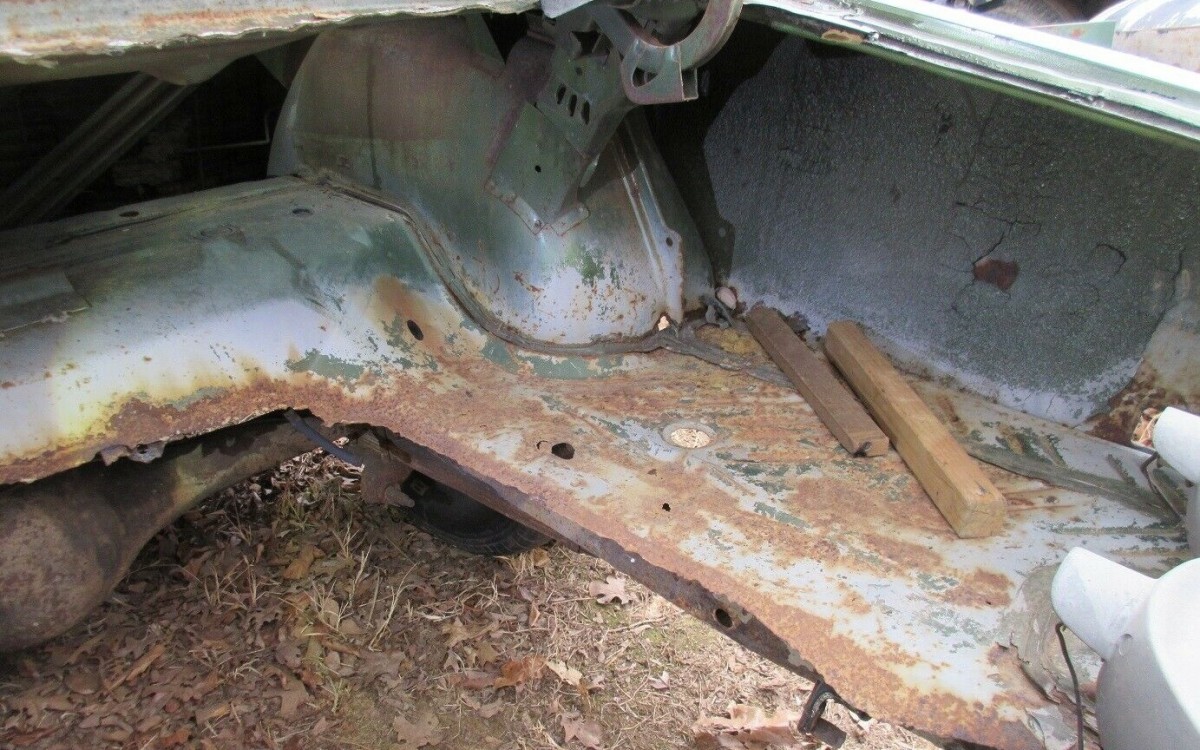 There’s really not a great photo of the interior area, but we do get to see part of the floorboards which the seller says are all in fair condition, although it would have been nice to have seen it all with the seats removed. A couple of rare interior options the car originally came with are a rear window defroster, which still has some of its parts present, plus a 6-way driver’s seat which has been replaced with a standard seat. No photo of the instrument panel is provided.