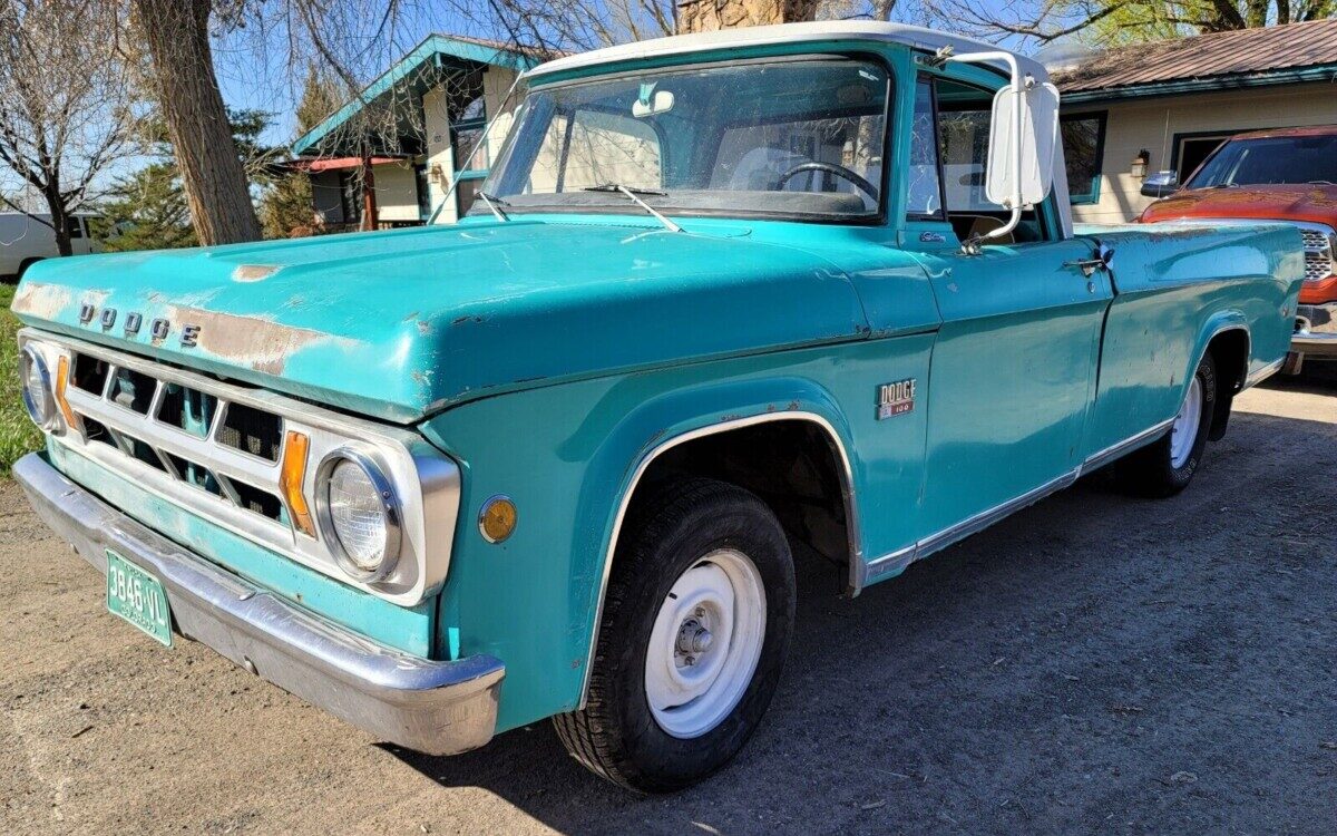 Ford F150 and Chevrolet Action Line (’67-’72) pickup trucks have certainly come into their own and received their due from a collectibility perspective. What about the third leg of the Detroit Three, Dodge? Not so much so. But that will probably change too and today T.J. has found us a Dodge entry in the form of a 1969 D100. This example packs a punch under its hood and is said to be mostly original, so let’s give it a once-over. Residing in Delta, Colorado, this very aqua, long-bed pickup is available, here on eBay for an opening bid of $9,100.