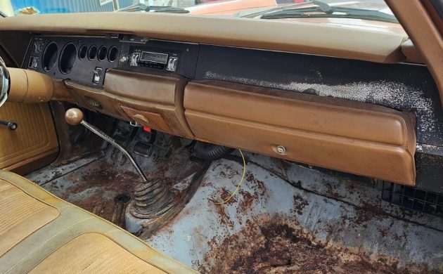 Dodge introduced the Super Bee for the 1968 model year, basing its muscle car on the company’s Coronet Coupe. This generation remained in production until the end of 1970, with its replacement featuring Chrysler’s move towards “fuselage” styling. This Super Bee rolled off the line in 1969, ordered by its first owner in Code T5 Copper with a Beige vinyl top. Its history is unclear, but the seller admits it requires a total restoration. Most of its paint is original, raising the possibility that the winning bidder could attempt to repair any shortcomings while protecting the vehicle’s survivor status. However, the seller appears to have other ideas. They suggest that the new owner dip the body to ensure that every spot of rust is exposed so that it can be eliminated. Many typical areas have succumbed, including the floors, footwells, trunk pan, and an area around the back window. The underside exhibits further surface corrosion, but the rails look rock-solid. There are further bumps and bruises for the buyer to tackle, but the faux side scoops and the desirable Ramcharger hood are intact.