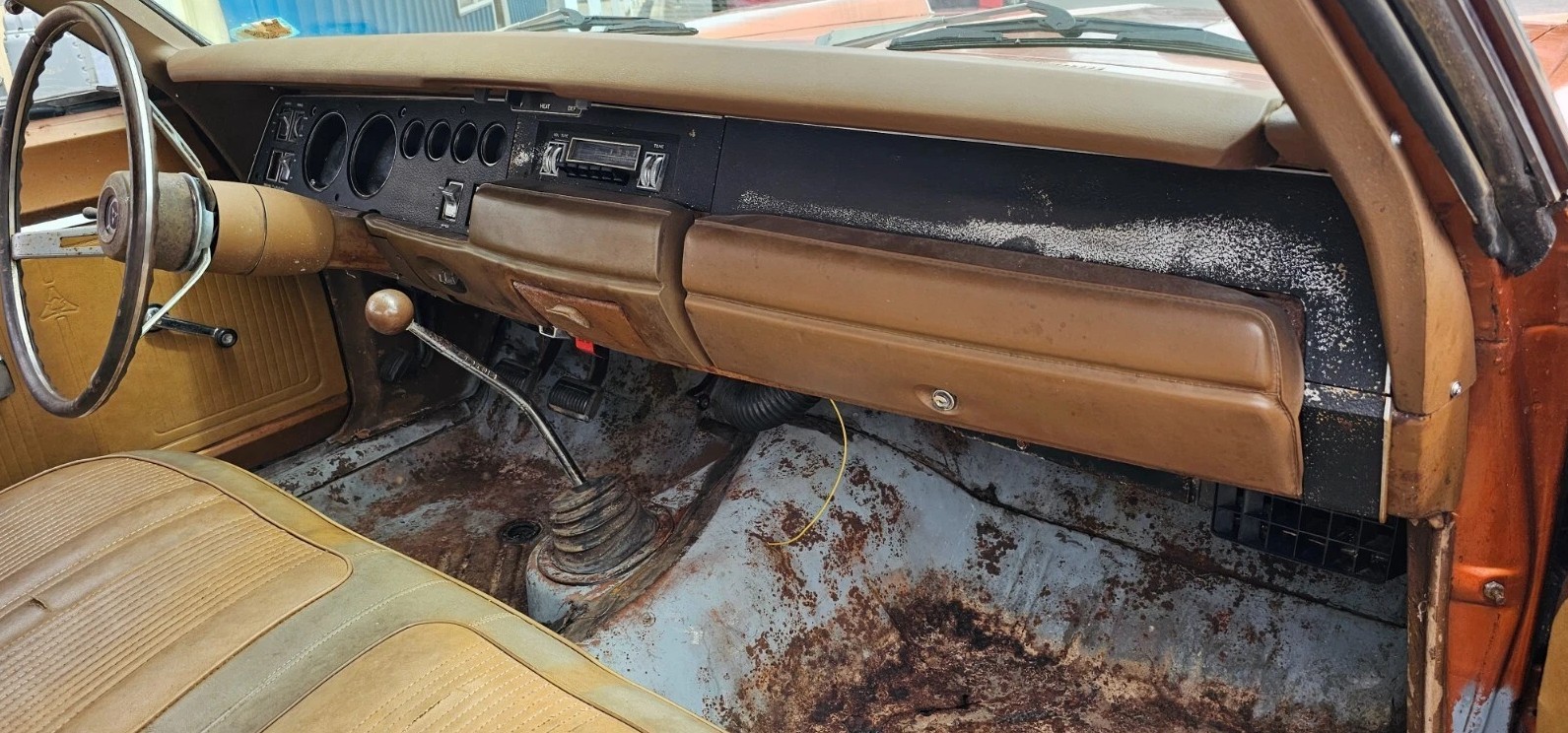 I’m with Stan. Beautiful color combination. I might be in the minority here, but I like the white walls on this one. And at least to me anyways, the condition of the floors just doesn’t match the condition of the rest of the car. I was kind of surprised truth be told. This would really look great restored, especially if its kept with these colors. 383 4 speed would be blast to drive.