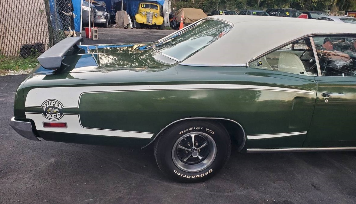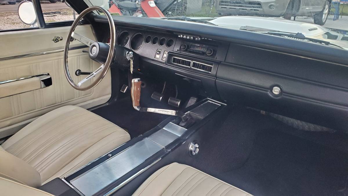 This Super Bee has the 383 cubic-inch “High Performance” V8 that was standard in these automobiles. It’s paired with a 4-speed manual transmission with a Pistol Grip floor shifter. We’re told the indicated mileage of 58,000 is original and that the Dodge runs as good as it looks. Like the Road Runner, the longer the Super Bee was in production, the less austere it became, and this car is nicely furnished and equipped, including factory air conditioning which we’re told blows cold.