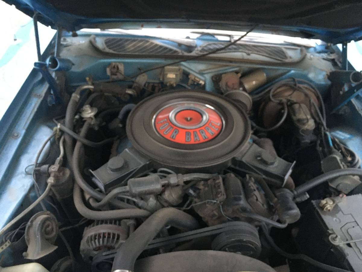 Inside the passenger compartment, everything looks mighty tidy. The car hardly looks like it has been sat it, another testament to its care over 50 years. The seller makes mention of the car still wearing several items from the first purchase, including its original license plate, dealership plate frame, and the dealership registration cardholder (still affixed to the driver’s sun visor). Once you start the car up, the 383 V8 with a 4-barrel carb and automatic transmission should purr nicely. If I were selling the car, I would have pressure-washed the engine as it’s carrying several years’ worth of grime. For a premium car at a premium price, this would be a plus.
