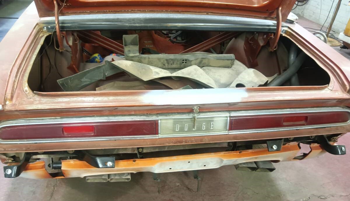 According to the seller, this Dodge is rust-free, having spent its life in the dry climate of Arizona. Some early restoration work may have been started as pieces like the bumpers, windshield, and back glass have been removed and have either been refreshed or have new versions ready to go back in. The interior may have already been stripped down as we see the seats stacked up against a wall.