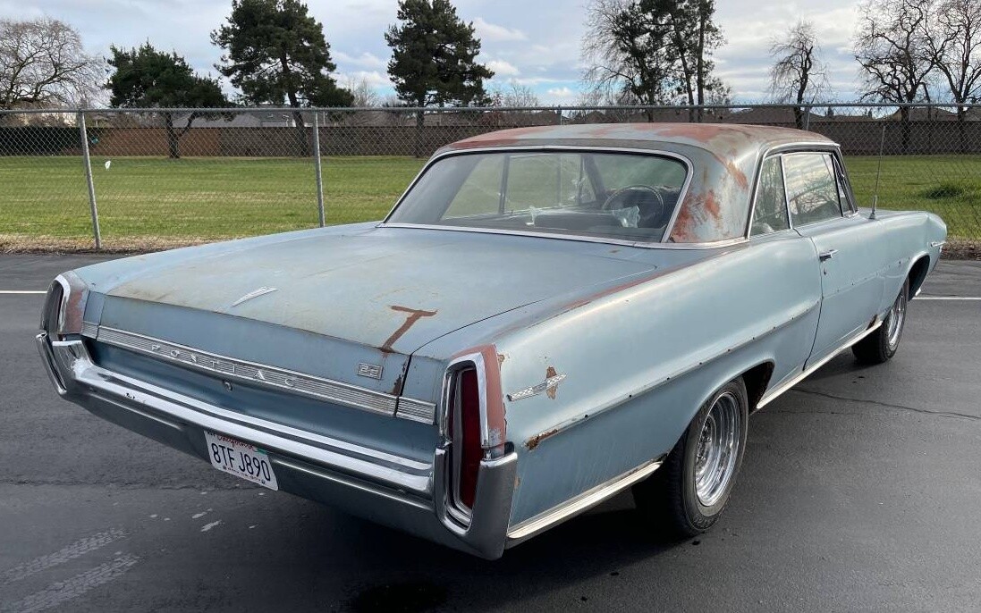 My first car was a sweet ’64 Catalina, 389, 2bbl, automatic, 2dr. hardtop (looks like a convertible). It was 6 years old and I paid Great smooth riding car and it got relatively good, 18 mpg (I couldn’t afford big gas bills and replacing burned off tires). Being a northeastern Ohio car all its life, I bought it, patched the quarter panels and painted it on the farm before turning 16 years old and getting my driver’s license in 1971. Never had any serious rust in the floor, frame, or trunk. This one list must have seen some serious salt for some time.