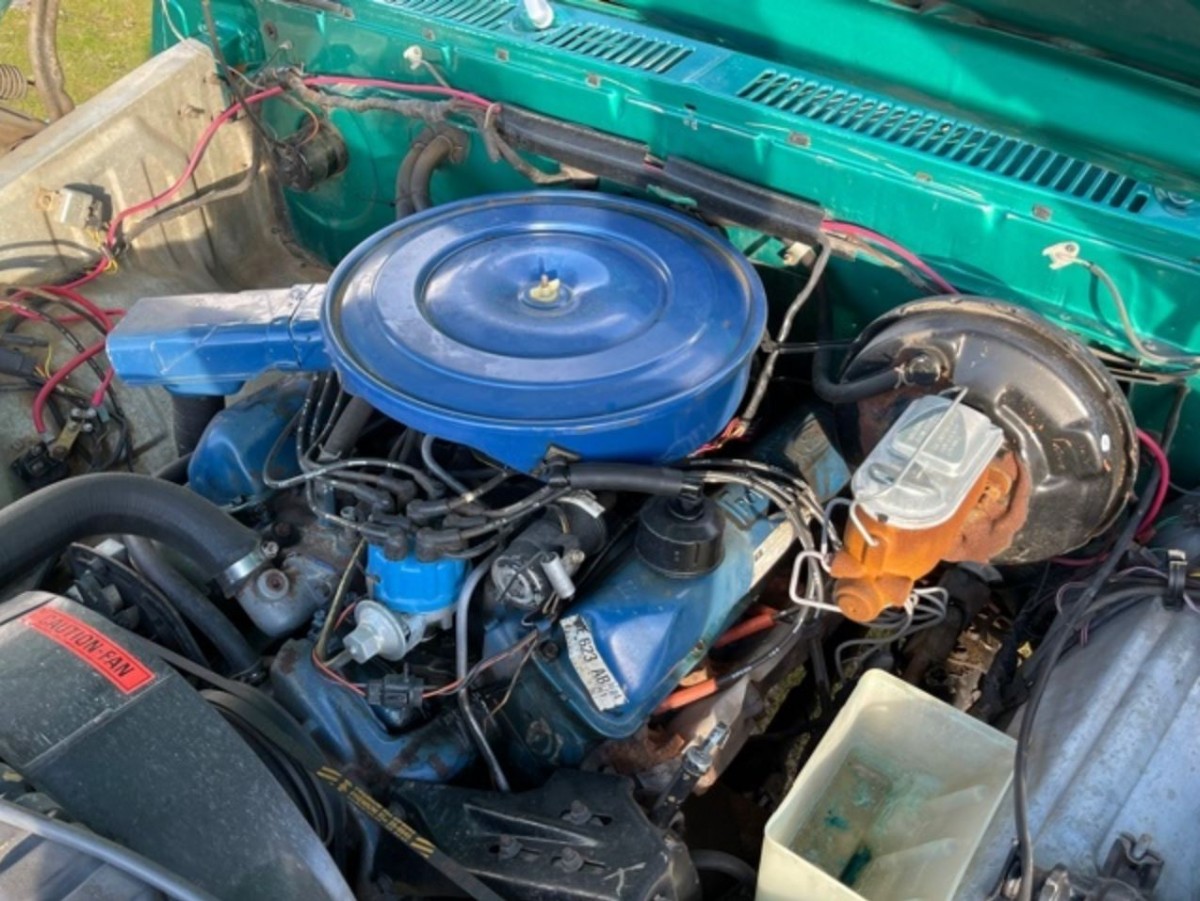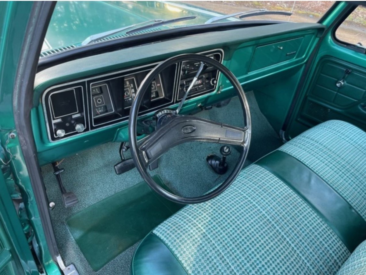 The originality of this F150 continues when we open the doors and survey its interior. The original owner ordered the truck trimmed in Code MR Jade vinyl and cloth, which remains in excellent condition. There is some minor wear on the outer edge of the seat on the driver’s side and what appears to be a tear in the lower vinyl on the same side. If I were to buy this classic, I would consult an upholsterer to see if satisfactory repairs are possible. It would seem a shame to compromise the originality of this classic by replacing the cover because of those faults, and I wouldn’t like to see them deteriorate further. The wheel has a couple of cracks on one spoke, but the remaining interior trim, dash, and pad look excellent. There is evidence that the F150 may have housed a CB radio, but that is long gone. It isn’t loaded with luxury appointments, but the AM/FM radio should provide entertainment as the miles roll under the tires.