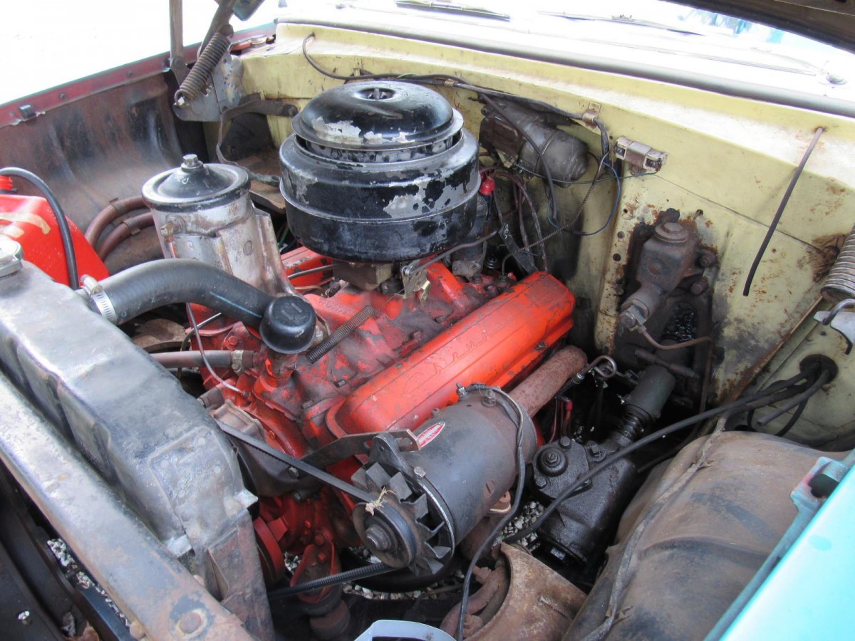 Good find Jim! The interior doesn’t look that bad at all. I see it is an early 265 with the add on oil filter cannister, meaning not a full flow filtration system. If it’s too far gone, there is always the “any old 350” route, depending on your budget.