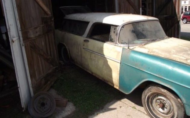 Reader Jim G made one amazing find a few years back! He’s finally getting around to doing the necessary work to make it a driver again but thought it would be fun to see what his fellow readers think he should do with it. His find is a 1955 Chevrolet Nomad that was parked in an old lady’s barn back in 1967! It stayed there until he purchased it in 2016 and while it’s going to need lots of work, he thinks he might be able to keep the car fairly original. That being said, he can’t help but wonder if it would be more fun to modify it a bit. You can read more about the car in his own words below. So, take a look at this amazing find and let him know what you think in the comments below.