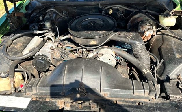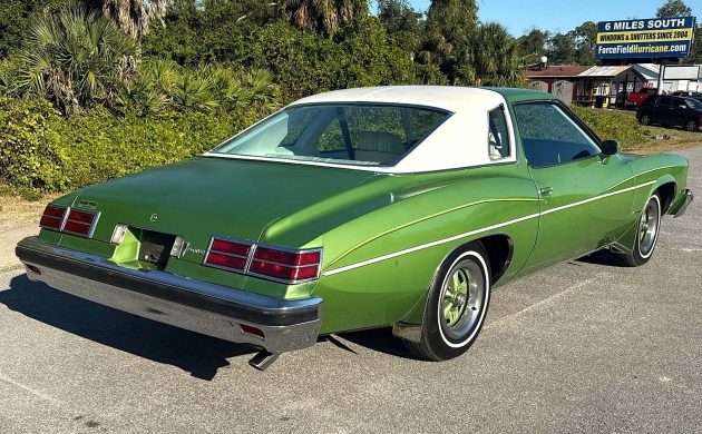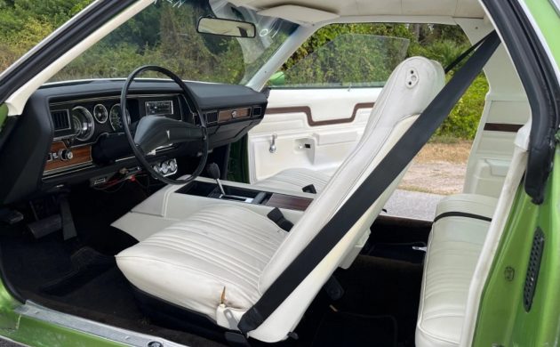 Although the Metalime Green color may not be for everyone, I remember seeing quite a few Colonnades running around in the seventies wearing this shade, and the seller states that the paint is original. He claims that there have been a few chips and scratches touched up, plus there’s a bit of fading on the plastic insert surrounding the front bumper. However, it would be sad to see the survivor status lost here by respraying the entire body, and I’d probably learn to live with the few minor flaws to keep the exterior original. The Pontiac rally wheels and whitewall tires were a popular choice for the LeMans during this period, and they still look just as classy today.