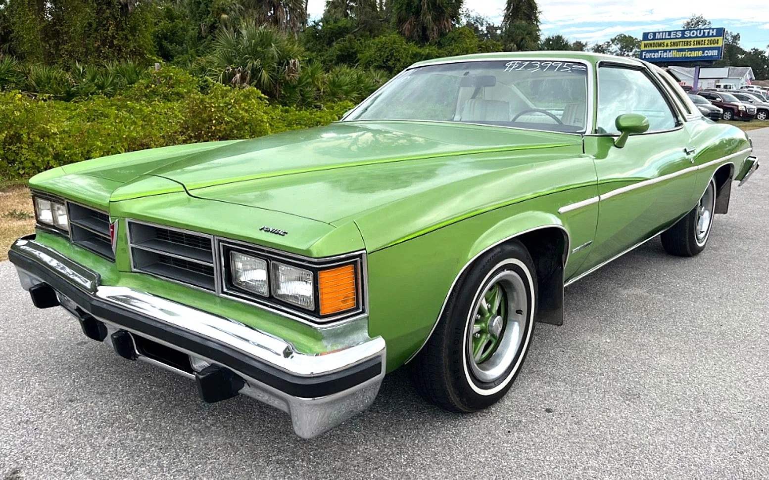 Wasn’t there a ’76 or ’77 Cutlass Supreme in this exact same color combination on here a while back? I agree with Mike and Stan, The console, white buckets and black carpet all looks sharp together. And adds a great contrast to that green. You’ll probably be the only one at a Cars and Coffee with something like this. Really nice clean LeMans here!!!