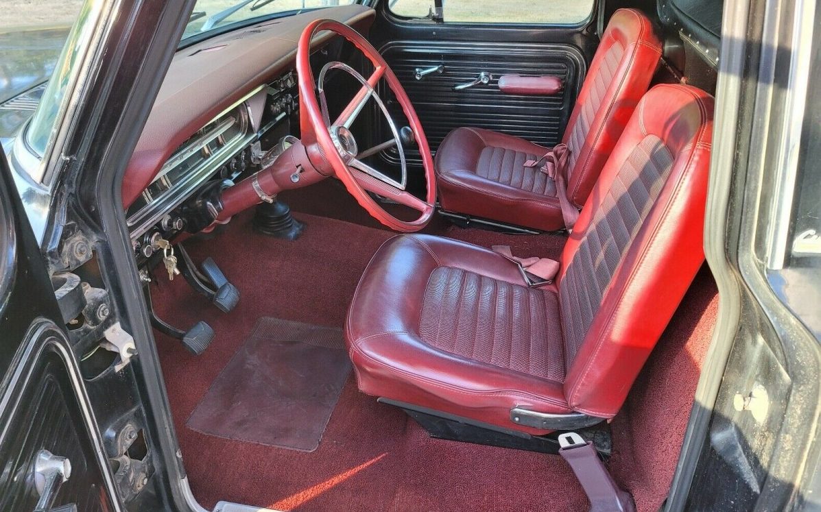 The cab of this truck is in fine shape – surprising actually, as it shows little wear in spite of its age and mileage. The crimson carpet and seats are very clean though there may be a single crack in the dash pad. There appears to be a vintage Sun “Super Tach” strapped to the steering column.