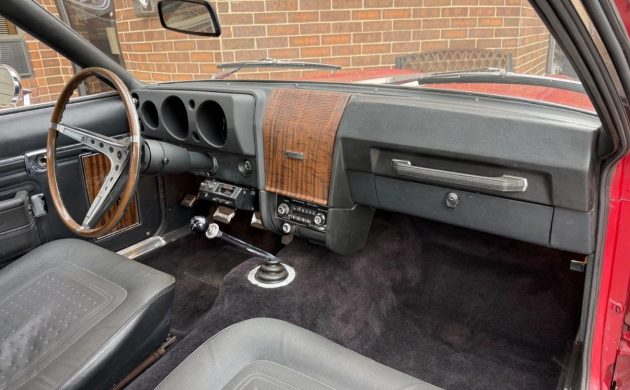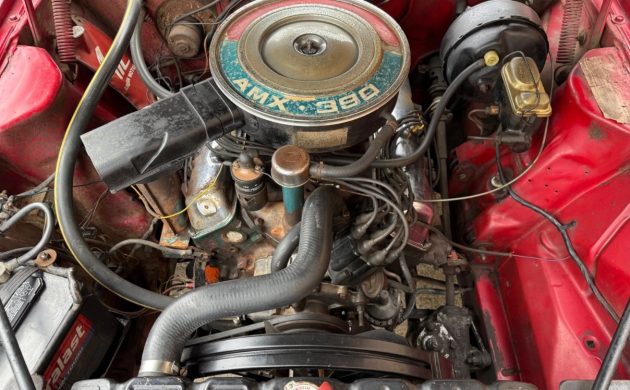 One aspect of the seller’s listing that I admire is that they don’t try to paint this AMX as something it isn’t. They admit that it recently received new carpet, but the rest of the interior is original and shows wear on the driver’s seat. However, the remaining upholstered surfaces show no evidence of wear or distress. Someone also installed a cassette player near the driver’s right knee, but it could be removed if the buyer prefers total originality. The dash and pad are excellent, and the gauges and wheel appear perfect.