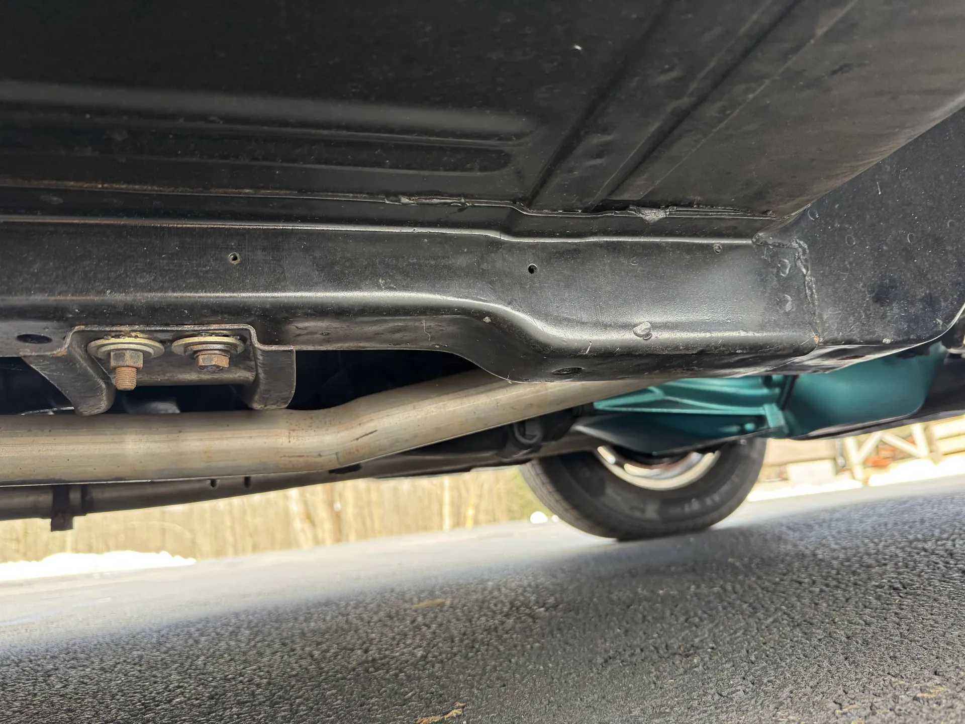 The exterior was also repainted before the seller’s acquisition, and while he is unsure of the factory color, the sheet metal is now wearing what is thought to be the Pompeii Yellow color. There’s no word on whether any bodywork was performed before the respray, but the panels appear straight and in good shape, with the owner reporting no dents or scratches in the finish. Several photos from the undercarriage are included, and fortunately, this one also seems strong and solid down below.