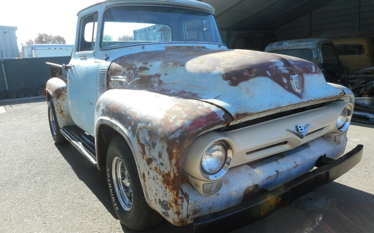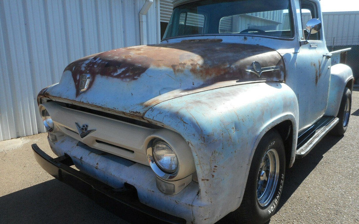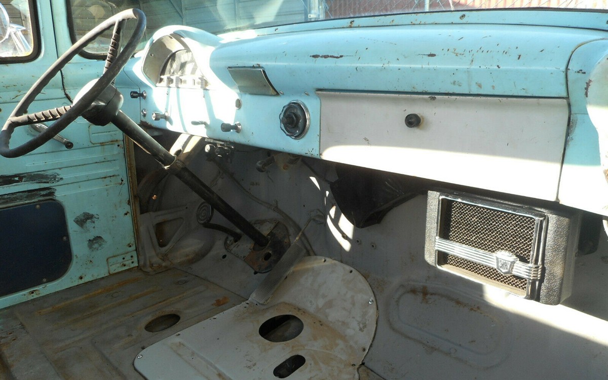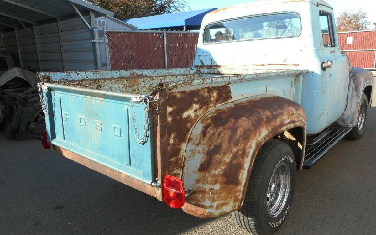 Not being picky but I like honest descriptions and not sellers who try to embellish. The F100 badging started in 1953 and as most of us know the 53-56 bodies were mostly the same except the dash and door change on the 1956. This truck is missing the transmission., has what appears to be a 55 Radio as the 56 truck radio didn’t have the wavey ring, I could be wrong. Here on the East Coast I would only offer 3-4k for it. Out with the 390, in with a 272 or if I decided to modify then I would go with a 312 TBird, just my preference. I have 2 ’56’s F100 chassis and F350 drw with special ordered F250 length chassis.Both of them are Boyertown bodies. The F100 is staying build original, paint code is primer so I free to chose color and the F350 is getting a 272 as the 223 is completely shot, gearing is being changed from 5.88 to something lower.