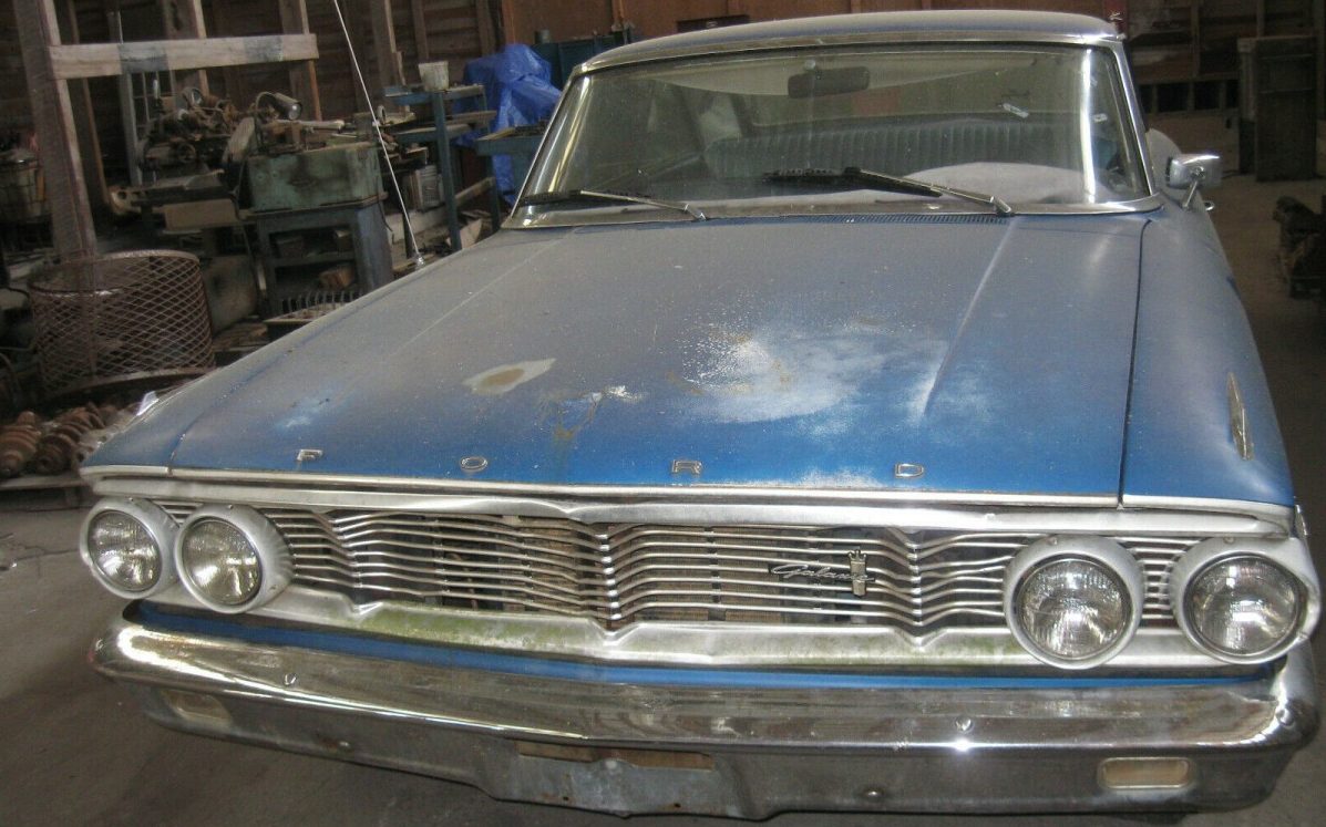 NASCAR was certainly all the rage in the ’60s, and there was a mantra that stated, “Win on Sunday, Sell on Monday”. At one time I thought, naively, that meant, well if you win a race on Sunday, the car won’t be worn a darn on Monday so you better ditch it, right? Talk about being slow on the uptake…But there was a prevailing belief that a stock car brand that won a Sunday race would lead to retail sales following the win. Was it true and verifiable? I don’t know but that was the belief. And one manufacturer who wanted to get a hold of some of that winning and sales action was the Ford Motor Company. Midway through 1963, Ford upped the ante on their 406 CI top-drawer motor and enlarged it to 427 cubic inches. The problem was that their box-top Galaxie wasn’t up to the aero challenge so that too got a makeover into the new for 1963 “Sports” hardtop which resembled a convertible top in the raised position. Dubbed a 1963.5 model as a mid-year introduction, the improved aerodynamics helped with winner circle achievement. The following year, 1964, presented a slight facelift and that’s what we have found here, a 1964 Ford Galaxie 500 “Sports” hardtop. Located in Quincy, Florida, it is available here on eBay for a starting bid of $3,500, zero bids tendered so far, or a BIN price of $4,550.