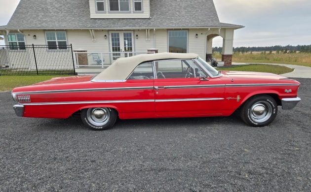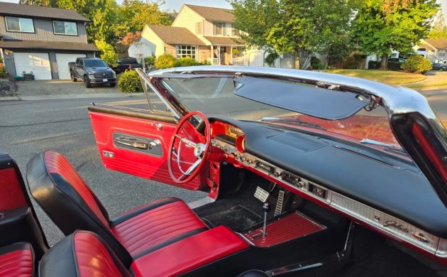 The Galaxie badge first appeared in Ford’s range in 1959, with its latest offering sporting the fins that were a hallmark of the late 1950s. An entirely new model appeared in 1960 with styling that was far more refined and conservative. It underwent annual updates before being replaced with a more aggressive-looking vehicle for the 1965 model year. This Sunliner variant rolled off the line in 1963 and has undergone a long list of changes and upgrades in the past sixty-two years. The first owner selected Heritage Burgundy paint, and when combined with the pale power top, it would have looked classy. However, it underwent a color change at some point, with the Burgundy making way for iconic Rangoon Red. The transformation is dramatic, giving the car an appearance that will turn heads on the street. The seller admits that this beauty isn’t perfect, with close inspection revealing a selection of paint and panel imperfections. It could probably be considered a “good 20-footer” that would benefit from a cosmetic refresh as time and circumstances allow. There is no evidence of rust, meaning that the process should be straightforward. The glass and trim are in good condition, and the chrome steelies are wrapped in tires from the fine folks at BF Goodrich.