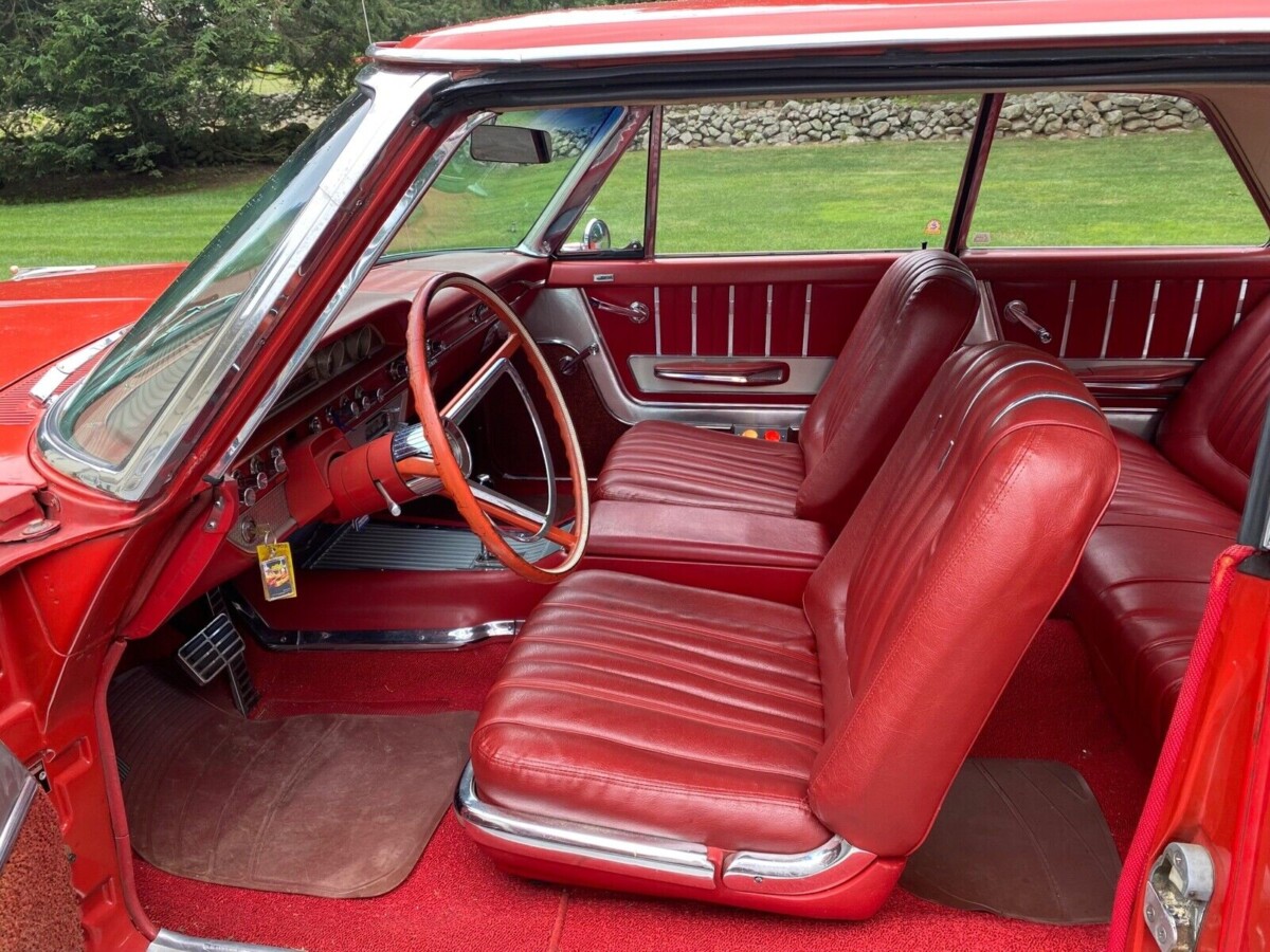 I had this exact color combo on my 62 500XL 406 6 pack car. I had it when carsike this were cheap in the early 1980’s I traded my way into it via my 69 Road Runner 383 car. My RR was a boring green column shift automatic and the Galaxy was this red with red interior. The Galaxy was featured in Car Craft magazine prior to my ownership. I remember racing a 1980 Corvette with a “show blower” and smoking it while I had 4 guys hanging out of the side windows motioning for the Corvette to hurry up while we were “walking away” from the Vette at 90mph. Sadly that car was very high profile and someone vandalized it by dropped nuts and bolts down my carburetor which danced on the valves when I started it. Not having the expertise to repair the damage I traded it for a 73 Road Runner with the 400ci truck motor. At least it still had it “meet meep” horn…….