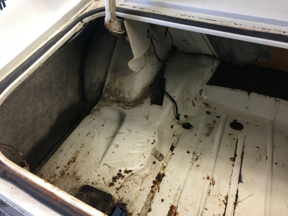 We’re told the car is mostly original, wearing a repaint in the factory color from 1985. Though the seller says it shines up well, its quality now is poor. The “magnet test” reveals that most of the sheet metal is still solid except behind the rear wheels. The driver’s side front fender was repaired ages ago that will need redoing, The paint is bubbling in a few places that may or may not signal bigger issues. And the undercarriage and floorboards look good, though the trunk needs repairs where someone cuts holes for air shock lines.