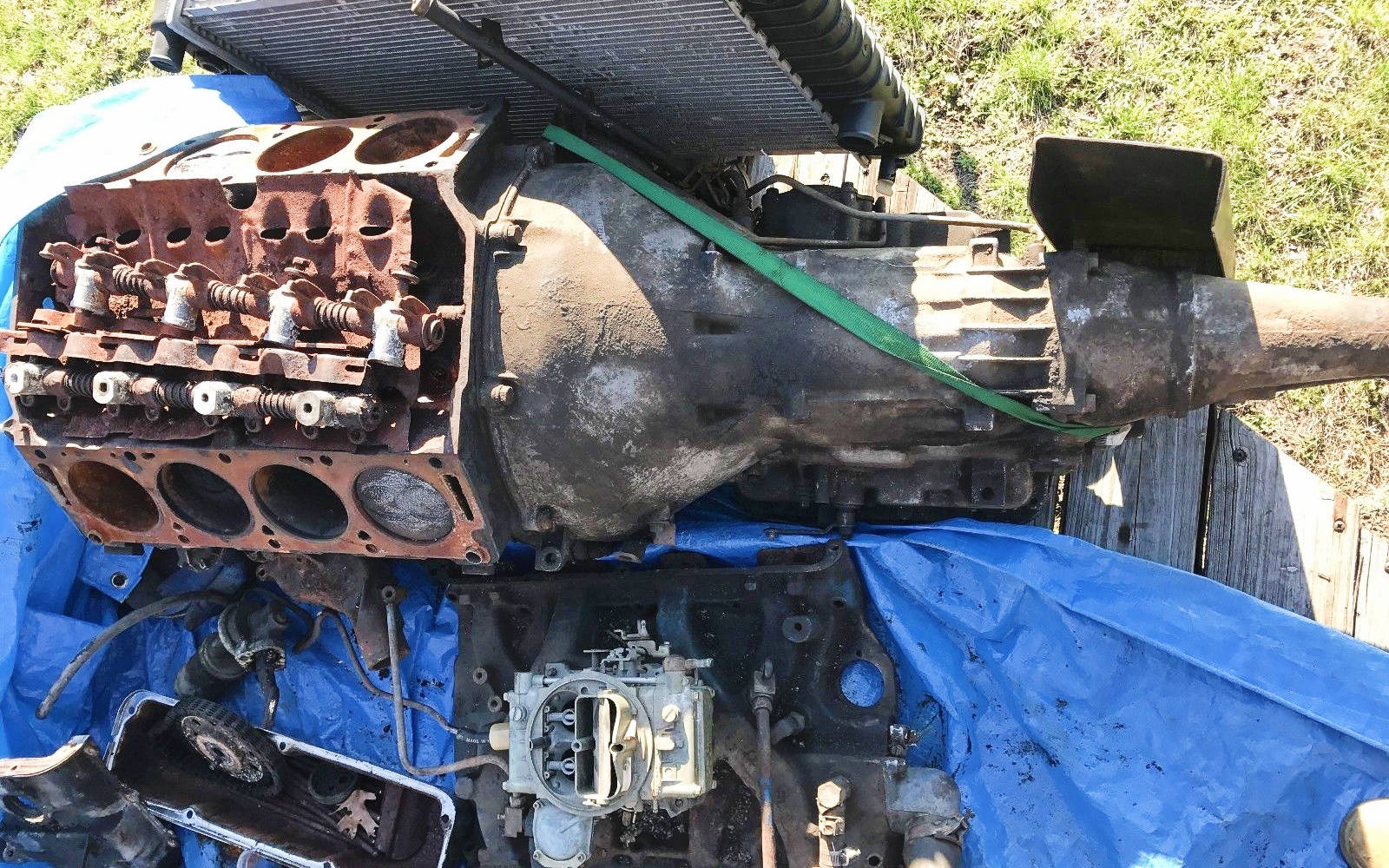 Sadly, the 390 V8 isn’t quite ready to be installed in the car. For one, it needs a full rebuild and to be put back together. Secondly, the car has some rust issues that really need to be addressed before you install anything this powerful in it. The original inline six is said to still run, but has a bit of a knock. You might actually be able to get some use out of the original engine though, while you work on fixing the rust and getting the 390 rebuilt.
