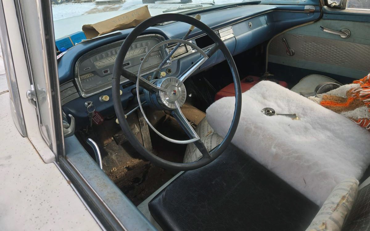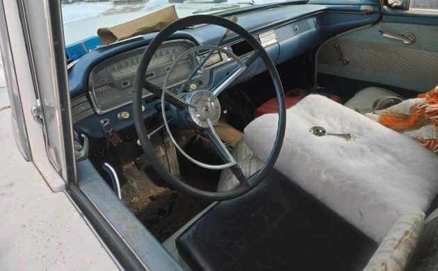 Sadly, the seller only includes this one interior photo, even though they duplicated almost all of the photos so it looks like there are a lot of them. I’m not sure what’s going in there, but I do see some holes on the driver’s floor so add that to the welding list. 1961 was reportedly the last year for the full-sized two-door wagon for Ford, unless you can think of a later one. Ford also offered a “Fordoor Ranch Wagon” with, yes, four doors. Wedgewood Blue and Colonial White is such a nice combo, I’d want to restore this car to how it originally looked.