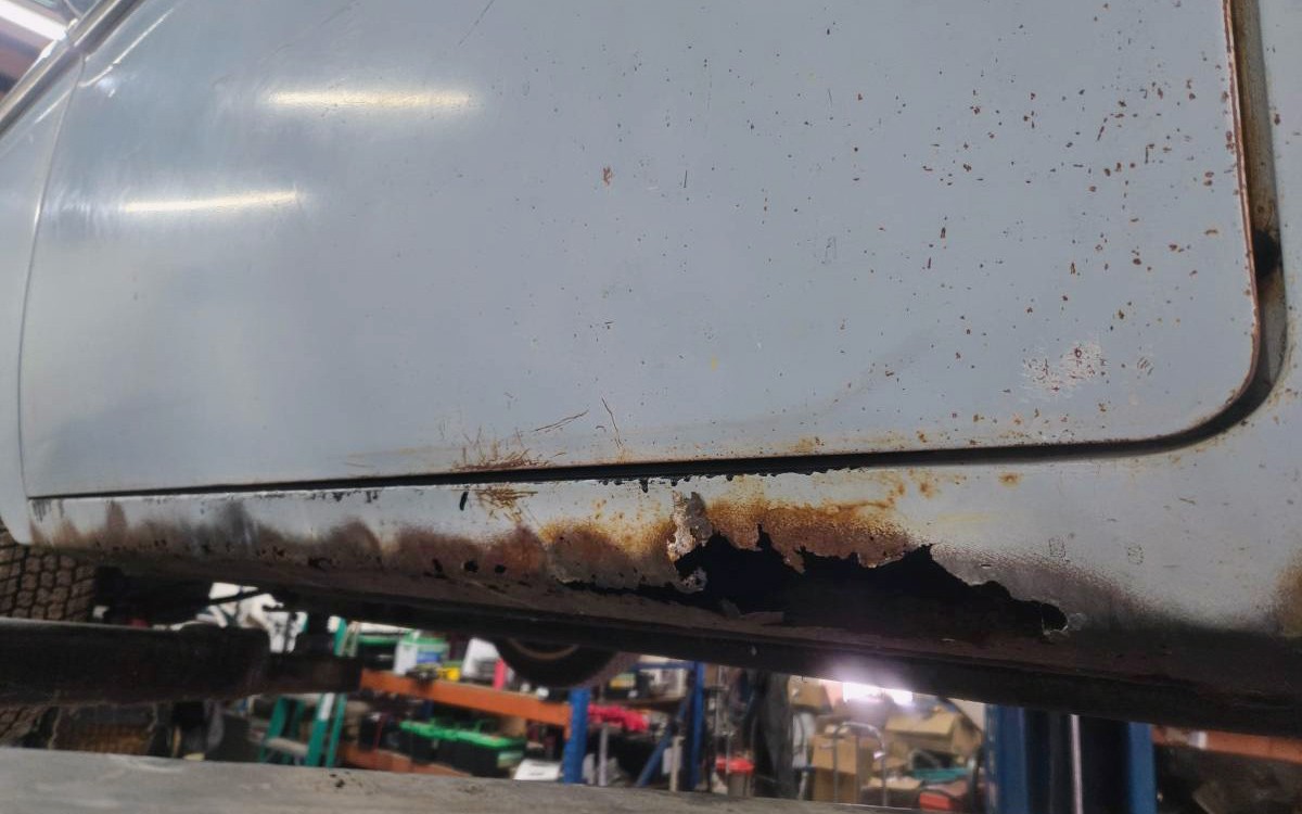 The afterburner era is alive and well here, at least on the rear of this Ranch Wagon. I love the placement of the backup lights. Some cars didn’t even have backup lights in the 1950s and 60s so it’s cool that Ford highlighted them so much. The tailgate looks surprisingly solid and if the rest of the car looked like the rear end I think this one would be gone already. That being said, it looks like a relatively easy welding task to change out the rusty rockers and anything else needed.