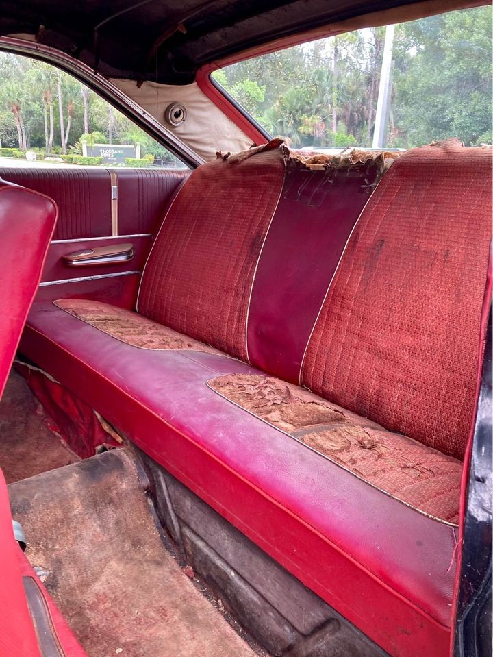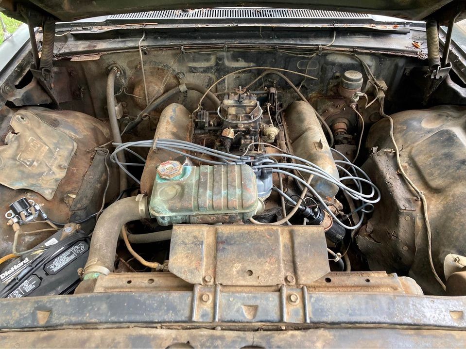 Wearing black paint (which may or may not be original) and a red interior, this may have been the sharpest looking Galaxie around back in the day. The paint is weather-worn, and the photos suggest that both rear quarter panels have been chewed on by rust. The front bumper and some of the chrome trim look to have held up nicely, but the rear bumper is rusty and bent. The interior is going to need a thorough re-do, at least in terms of upholstery, carpeting, and headliner.