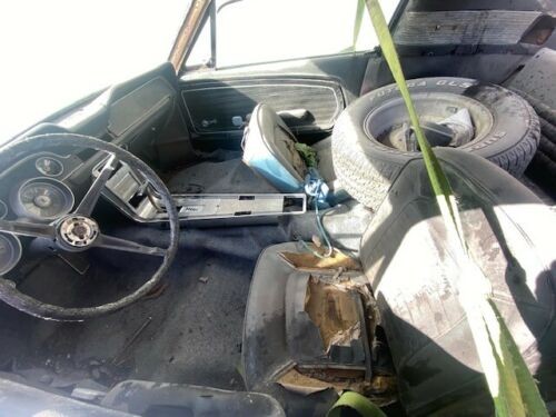 We assume the engine under the hood is original to the car, but we don’t know that. But the VIN tell us it had a 390 from the factory. And several parts are missing including the radiator, so it’s a safe bet that a total rebuild is going to be needed. The motor is paired with an automatic transmission, condition unknown. The seller says a Marti Report accompanies the car, but you can’t read anything off it from the photo and we’re not told what it says. The car has a black interior, but the seats are dislodged, and the interior is full of stuff, which we assume are parts that will come with the car.