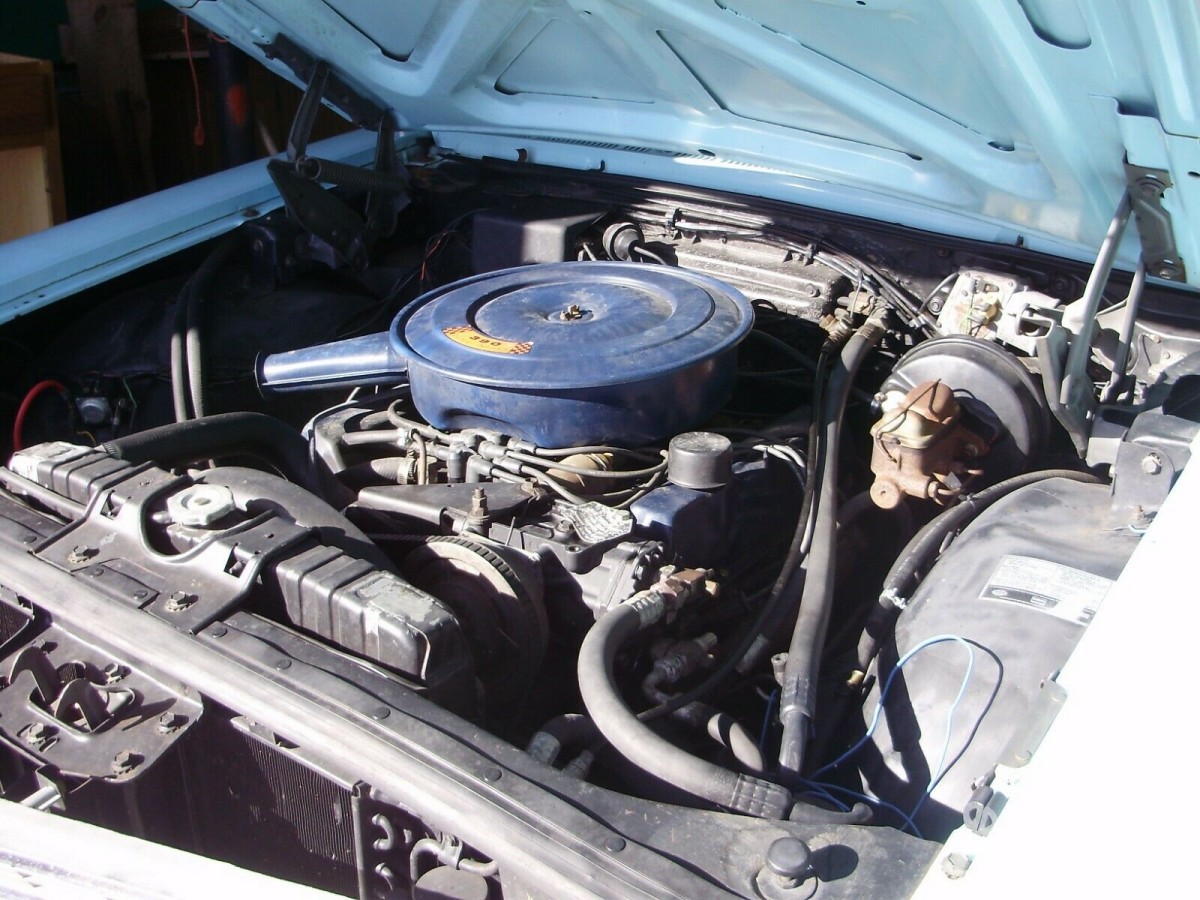 Under the hood sits a 390 cubic inch, 4-barrel V8 that the seller believes is original and is another reason why he thinks the mileage is so low. He changed the timing chain because of its age and found everything there in remarkably good condition. The C-6 automatic transmission is said to shift well, and the brakes work as they should. The seller replaced the exhaust system from the mufflers back, as well as the water pump, fuel pump and carburetor. He also cleaned out the fuel system, which suggests this car may have been parked for awhile before he secured it. The A/C system may have a leak as it once blew cold air but doesn’t now.