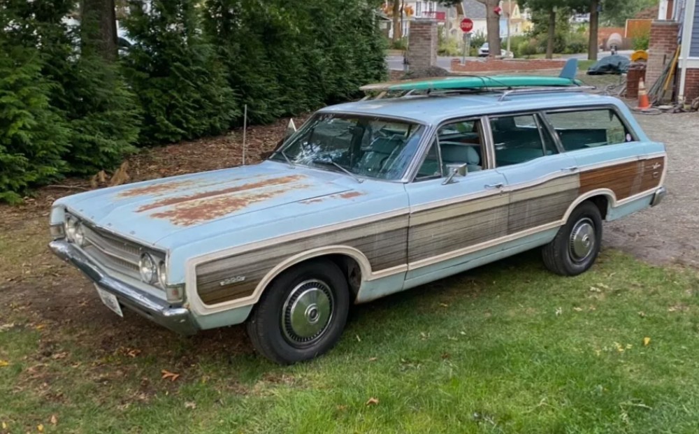 Though it takes a minute to warm up, the 390 engine is said to run well and has been fitted with a new carburetor and given a tune-up. For Summer cruises, the seller has a surfboard for the roof rack, and the buyer gets it as part of the package. And he/she has some replacement woodgrain panels, should you decide to restore the wagon rather than drive it as-is to Cars & Coffee. It has spanking new tires and disc brakes all around (rather than just up front). A Marti Report was purchased to help seal the deal.