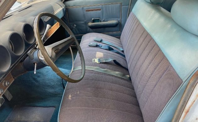This is not a rust-free find with some corrosion lurking in the firewall and cowl. But we’re told the rest of the wagon is solid, though the faux wood pieces are faded. The seller found the wagon in California and had it shipped to New England. For whatever reason, several switches (ex., brake lights) needed replacing, and the seller made a quick remedy for those items. The upholstery has been redone, but the panels in the rear storage area are all old and brittle.