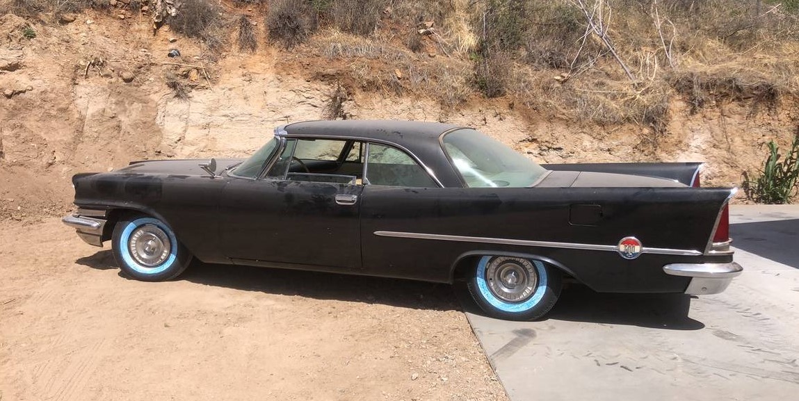 Available in just two body styles (hardtop and convertible), the seller’s hardtop is one of 1,918 built for 1957. This Chrysler is said to have been idled since the late 1980s and some work must have been done to it recently to get it going again. The automatic transmission was rebuilt before it was stored, and a new set of tires can be seen on all four corners. We’re told it’s a rust-free car, but both the color and paint are not original. It left the factory painted white but wears dusty black now.
