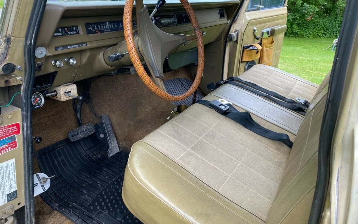 Look at that cargo area! If you’re out to set the world record for number of hound dogs transported in an SUV, this looks like the one to choose. Rear end damage led to a replacement tailgate that lacks the original’s electric motor. The rear bumper has been replaced by at lumber-yard board. The 3/4 Ton 1210 includes heavier duty parts than the lighter units, and All-Wheel-Drive results in a higher stance even without this one’s oversized tires. Would you choose this simple ’70s SUV or pay quadruple for one with today’s computerized techno-wizardry?