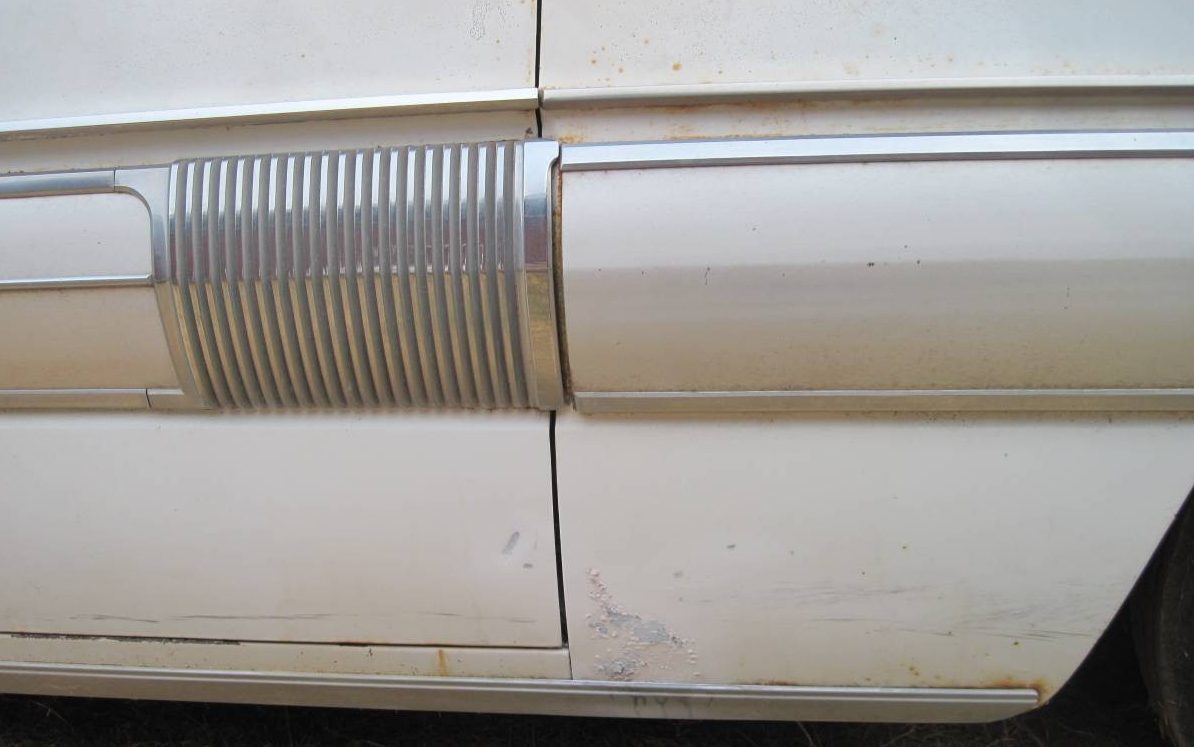 One of the most distinctive features of the Starfire is its unique trim which separates it from the Dynamic 88 and Super 88 models, and this example appears to still be in possession of all of it. While the finish is flat and the wheel covers are missing, the rest of the exterior, including the bumpers, presents well. The body looks straight with its biggest malady being horizontal surface burn-through and the resulting light coat of rust. There are some signs of rust “cover-up” that indicates an attempt to paint over the problem. There are no images of the underside but it would be beneficial to get a glimpse of anything that may be brewing there.