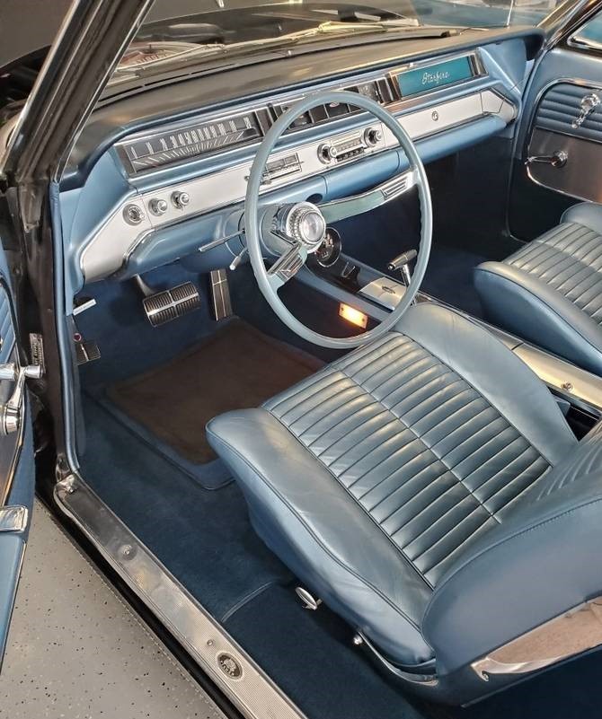 Under the hood of this Oldsmobile resides its original 394 cubic-inch “Ultra High Compression” Rocket V8 that had an impressive output of 345 hp. A Hydra-Matic transmission was standard along with power steering and brakes. Front seat belts finally moved over from the options list in 1964. This car has received some recent upgrades like a new carburetor, master cylinder/power booster for the brakes, tires, and exhaust pipes. As you might expect, the Starfire starts, runs, and drives extremely well.