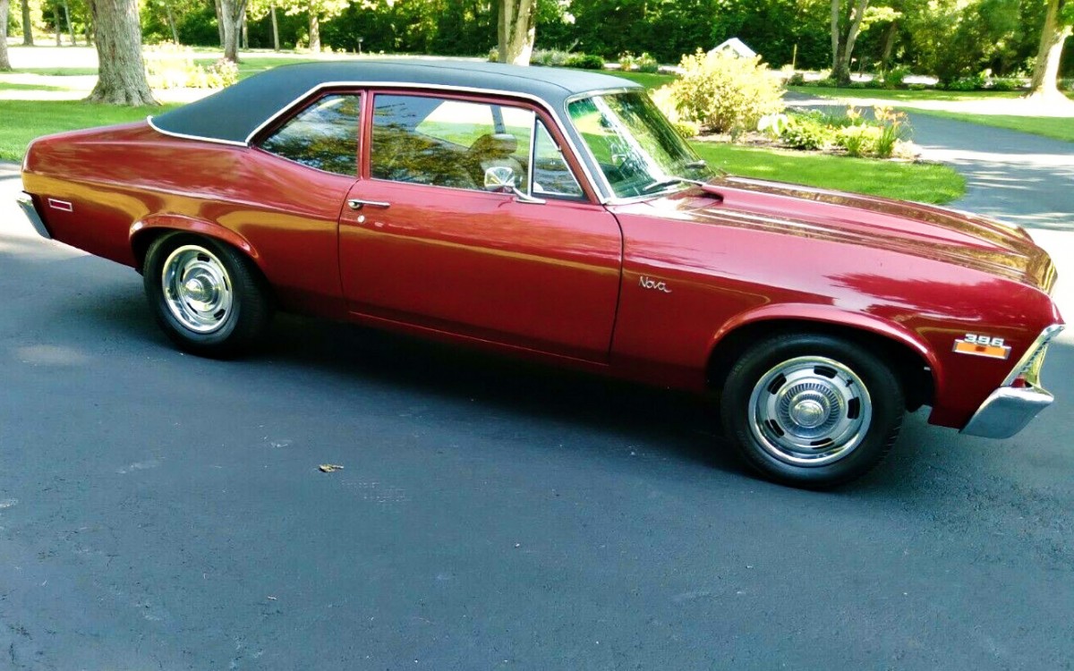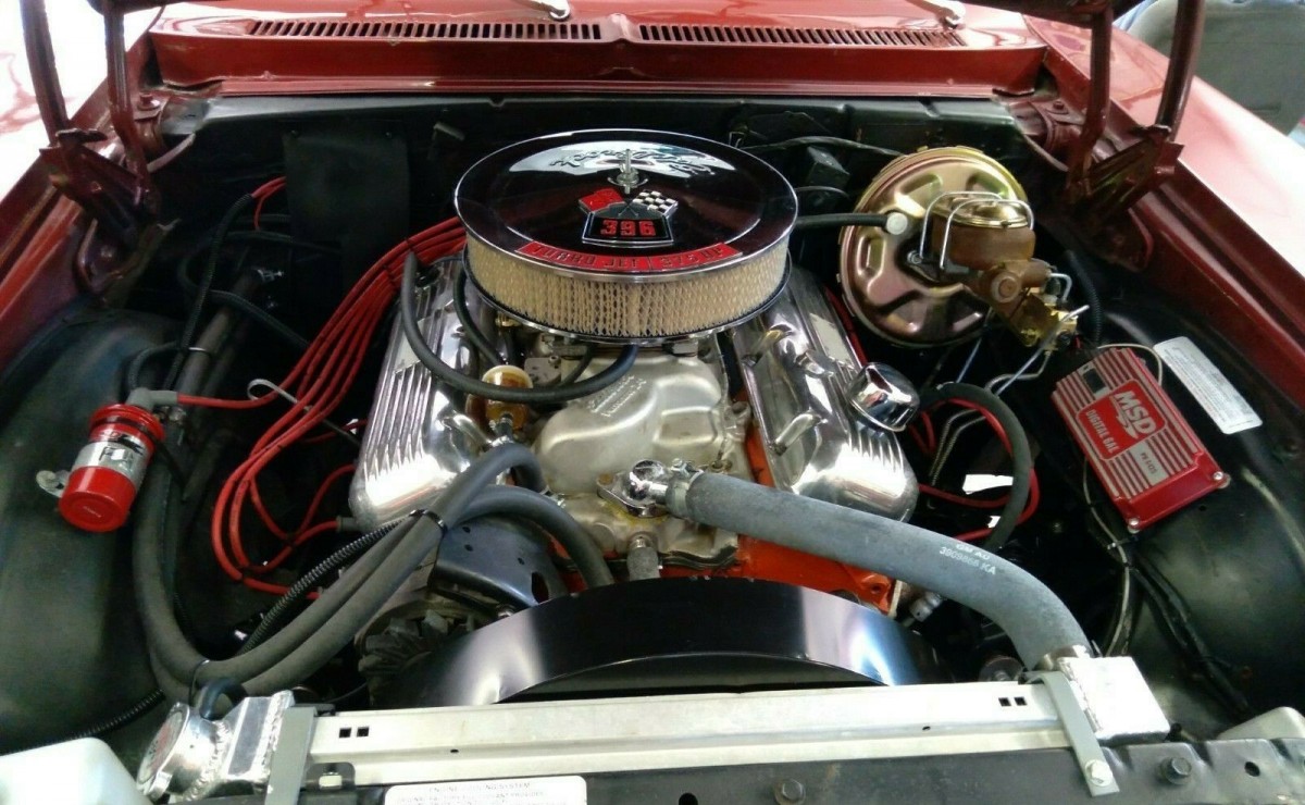 The Nova looks good although the seller only goes as far as saying the paint is driver quality. The burgundy color may not be its original color, but the black vinyl top helps set it off with the matching vinyl interior. We’re told the quarter panels have been patched and the floorboards solid, which hopefully equates to a rust-free car at this point. The Chevy is said to run well with an estimated 100,000 miles, but there is no indication if the 396 was rebuilt before being installed.