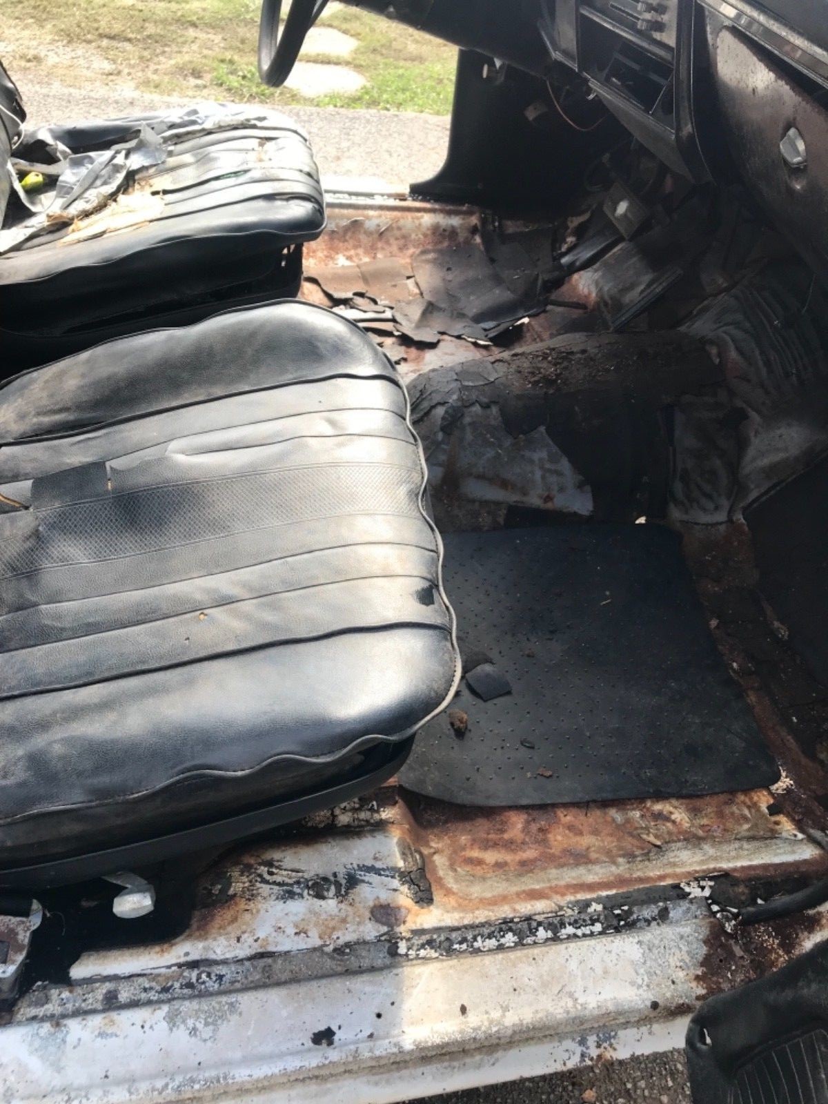 The front floor is more confusing than the rear. Personally, I wish that the seller had remover the rubber matting to give us a better view of it. He says that it is solid, but I think that I can see some holes there. It looks like there may be a hole on the passenger side where the floor meets the transmission tunnel. There also appears to be some holes under the driver’s feet.