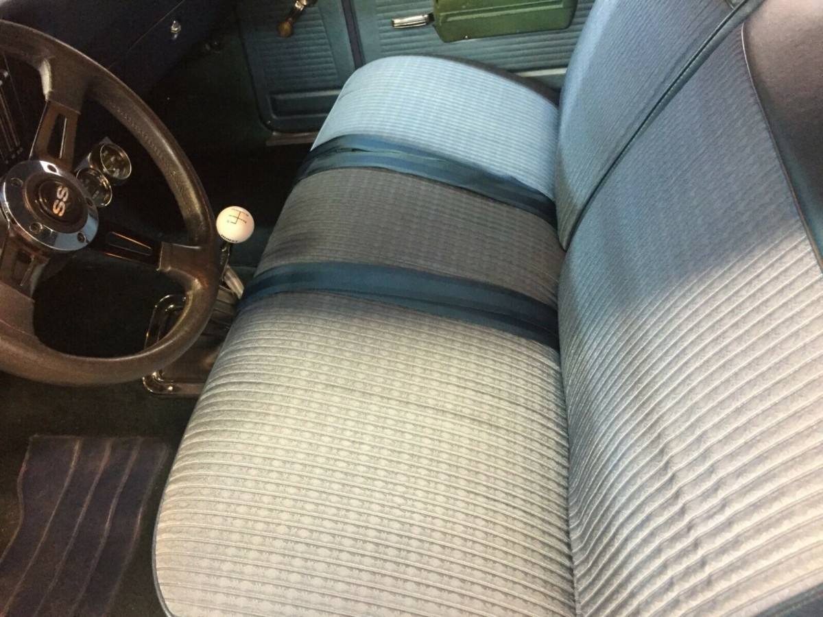 – the fabric of the seats is of a noticeable different shade than the door panels and the pattern is one I haven’t seen before. Was fabric offered in ’70 6 cyl Nova’s?