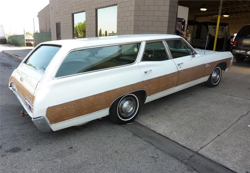 A ’67 Chev longroof in this condition with the Caprice package and the associated ‘homely’ firewood panels is at least in my world a very nice ride. As for the color diff in front bench and arm rest pads I’d guess they at some point have been re-covered with some ‘close enough’ upholstery material. I have the same issue with my ’64 Safari (also a Cali car) in that the reupholstered areas are way more ‘gold’ than the OE surfaces and I’ve found it to be a true PITA to find a perfect match…