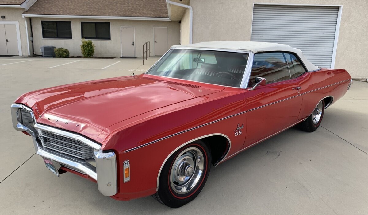 In 1969, there was no such thing as a Chevy Impala SS 396. You could get an Impala, you could get a 396 engine, and you could get a Super Sport – but you couldn’t get them all together. The 1969 model year would be the last for the once-popular Impala SS, but it only came with a 427 motor and saw just 2,455 copies. The car’s elderly owner added the SS badging to this sharp Garnet Red convertible when it was restored about 20 years ago.