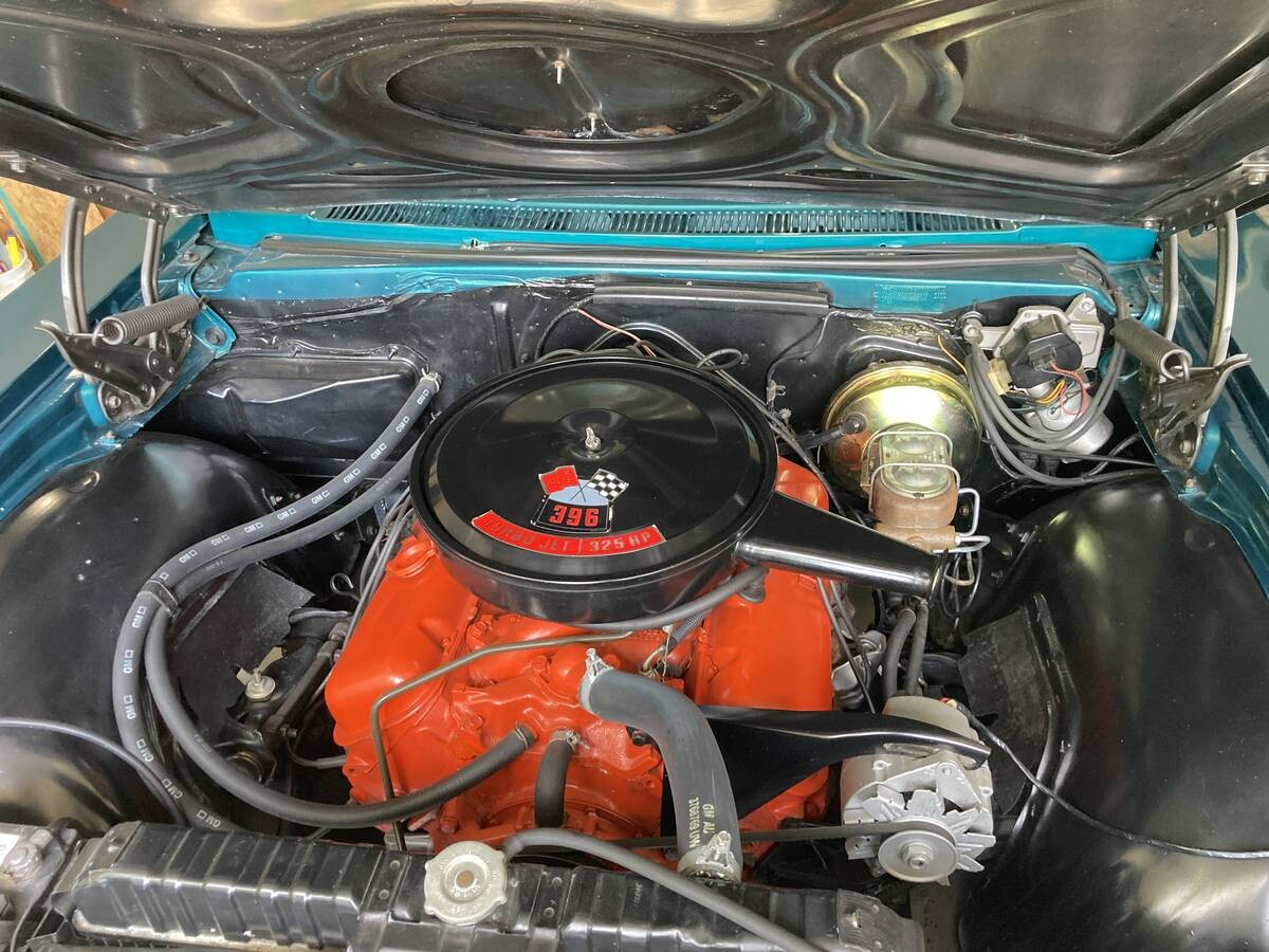 If this car Impala had a 396 from the factory, that has since been replaced by another that has received a mild build, although the seller doesn’t detail to what extent it’s not stock. The same can be said of the TH-400 automatic transmission and the car has a GM 12-bolt rear-end. But the Chevy has a Holley manifold and factory carburetor (we assume 4-barrel).