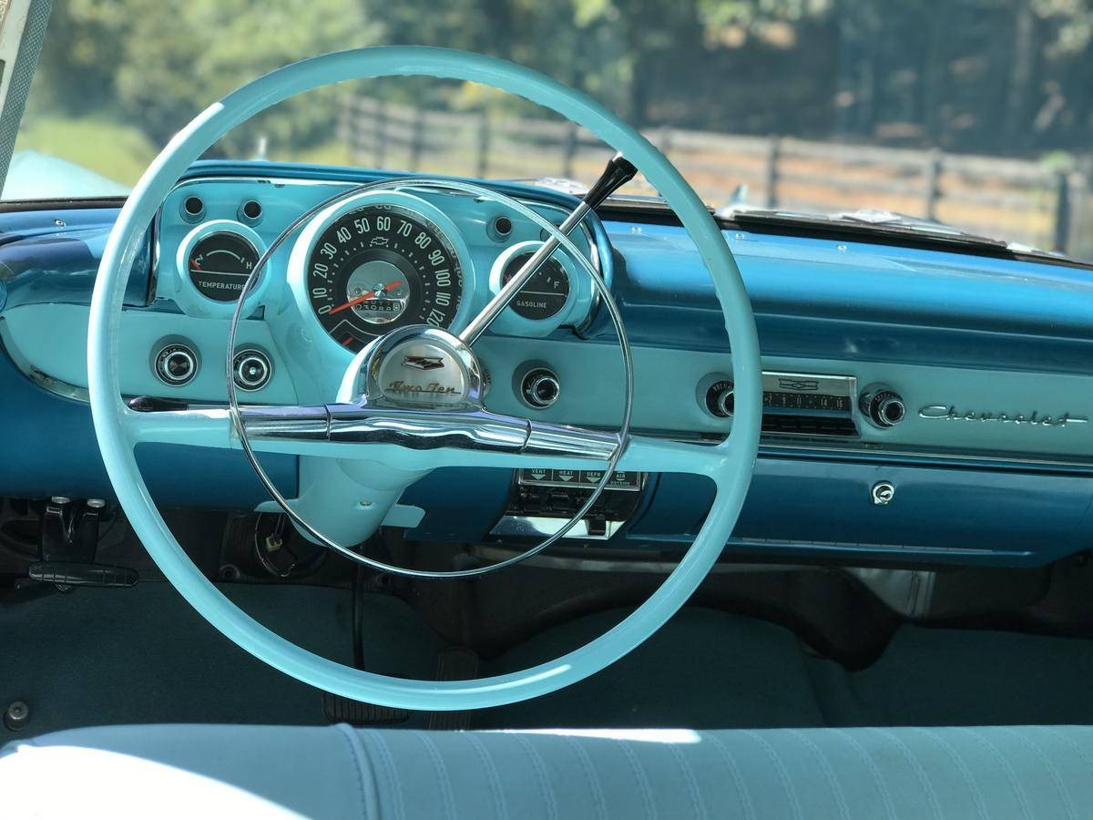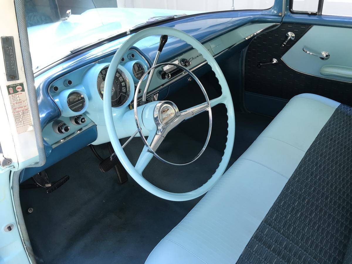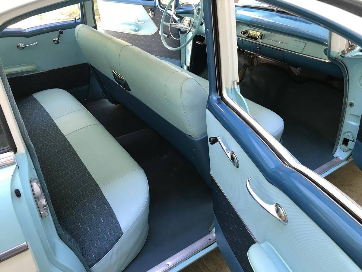 I had ‘55, same colors. A 4 door 210. It got hit on the 101 fwy in California, pushed into the median iceplant, rolled over , and 4 of us survived. Built like a tank!