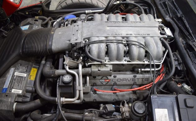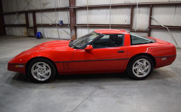 This 1990 Chevrolet Corvette ZR-1 is finished in Bright Red on the exterior and appears well-maintained. The seller notes the car has some fading of the paint on the front and back bumpers. While the car is now located in Utah, it is registered in California. The CarFax shows no accidents and that the car has been in Arizona and California. All good states for not accumulating any rust but fading from the sun is a factor. The car features 17″ alloy wheels (9½” front, 11″ back), which look clean and undamaged.