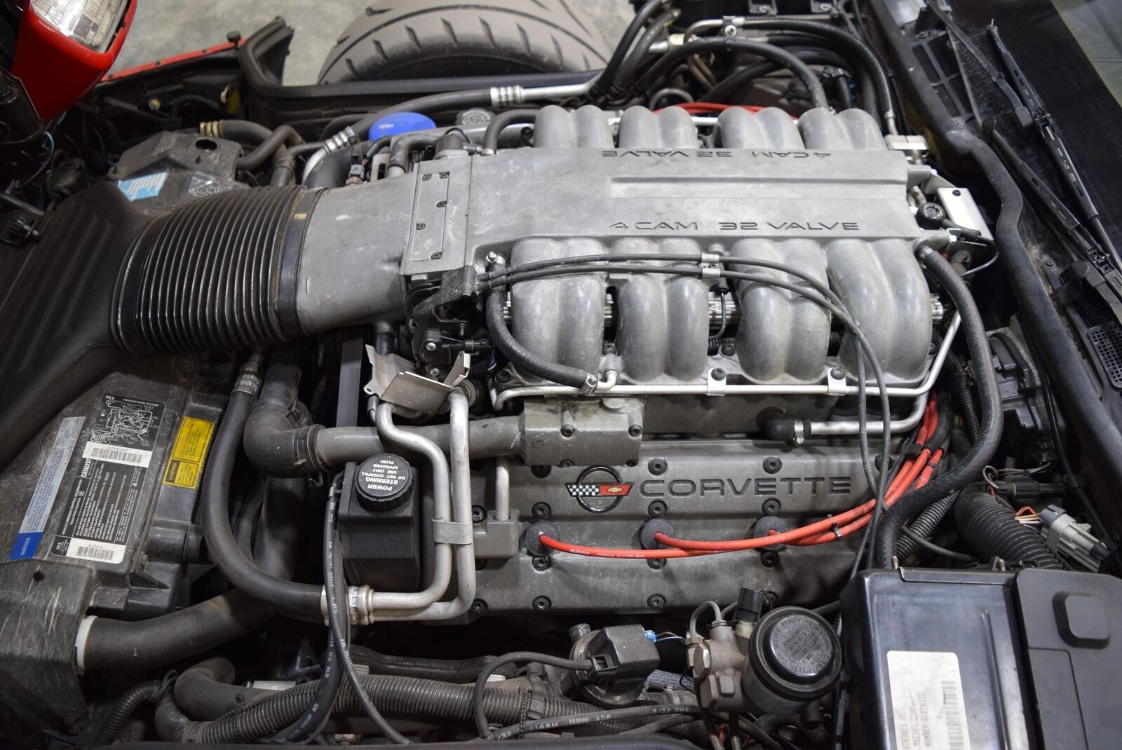 The base engine in the 1990 Corvette was the L98 V8 producing 250hp. The ZR-1 optioned engine was vastly different in many ways. Chevrolet and Lotus developed the ZR-1 engine and it was built by Mercury Marine. The ZR-1 engine was a 350 cubic inch V8 but featured aluminum alloy components, twin camshafts per cylinder head, and four valves per cylinder, making it a 32-valve quad-cam V8. Designated as the LT5, the ZR-1 engine delivered 375 horsepower with fuel injection. Mercury Marine was chosen for their expertise with aluminum engines. Power is transferred via a ZF-developed 6-speed manual transmission, with Bosch ABS and large 4-wheel discs for braking. The ZR-1 could complete the ¼ mile in 13.1 seconds, 0-60mph in 4.5 seconds, 0-100mph in 10.4 seconds, and reach a top speed of 175mph.