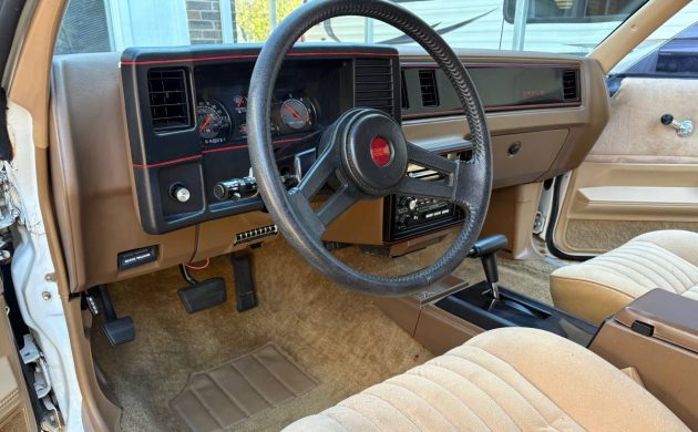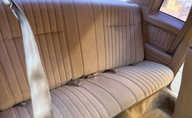 The interior looks nice, and I don’t think of a Monte Carlo as a car with rear seat passengers, but I’m sure a few of you have been back there (hey, remember, this is a family show!), and this one looks perfect. The classic tan 1980s velour is nice, but a red interior would have taken this one over the top. Chevrolet’s interior design team must have spent months at the General Motors design retreat center in the Bahamas to come up with color names. This car is called “white.”
