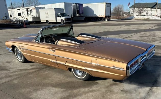 Ford released its latest Thunderbird model for the 1964 model year. While it hadn’t completely abandoned the styling cues of its predecessor, it was undeniably more conservative, in keeping with prevailing market trends. This 1965 Convertible has a known history, having spent much of its life in sunny California. The seller is its third owner, moving the car to its current location last year. This is good news for potential buyers because the favorable climate has allowed this classic to remain rust-free. The seller states that the Prairie Bronze paint on most of its panels is original, although there appears to be a color mismatch in areas like the driver’s side front fender that may have received a touch-up. The car remains very presentable, and the buyer could opt for preservation if they aren’t concerned about perfection. The seller splashed some cash on the power top mechanism, replacing a range of parts that should ensure it operates perfectly for many years. The top itself shows its age, and even those focused on preservation will be tempted to replace it to ensure better wet weather protection. The seller didn’t restrict their spending to the top, with many trim pieces replaced to improve the car’s appearance. The tinted glass is in good condition, and the overall first impression is positive.